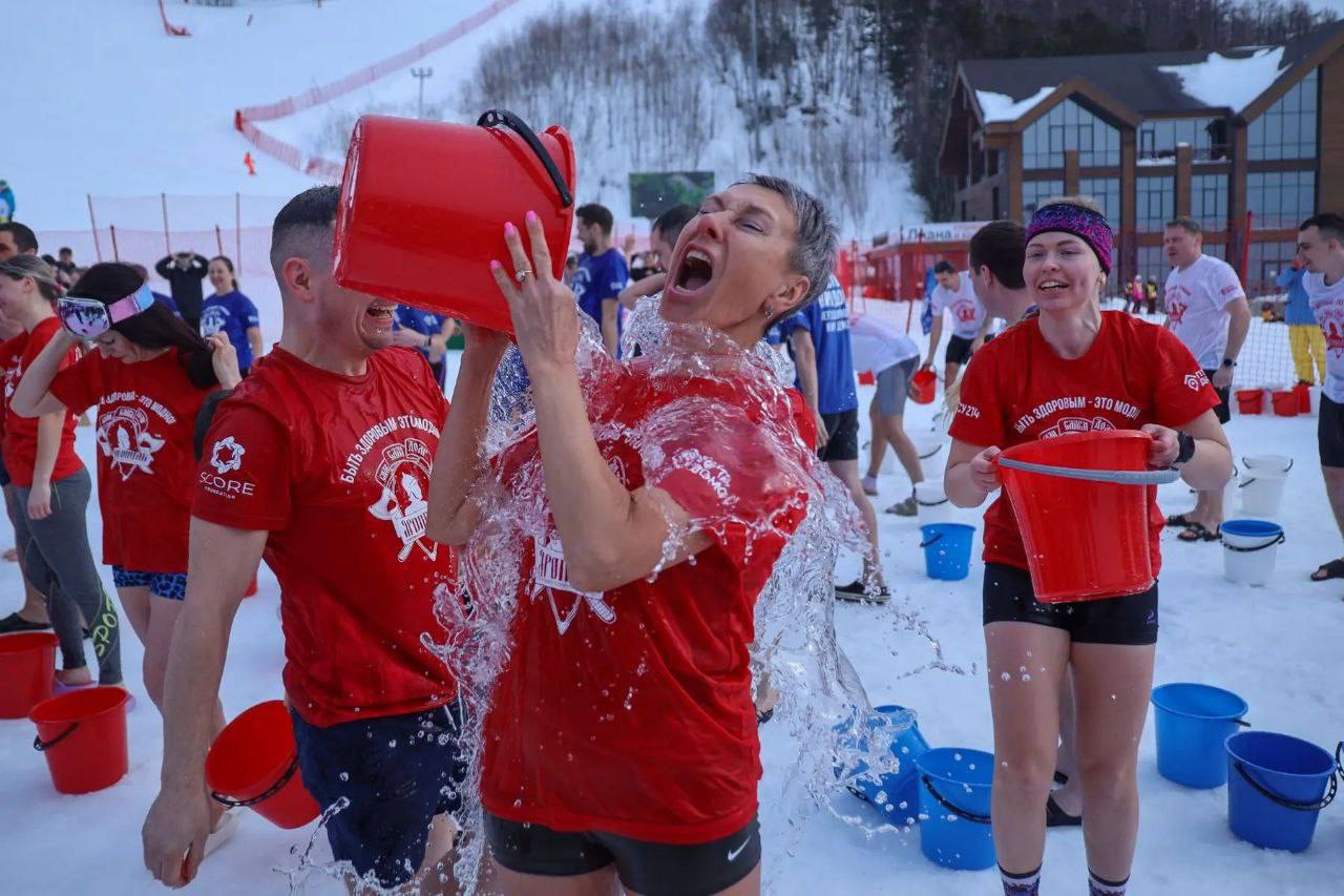 Более 100 сахалинцев облились холодной водой на «Горном воздухе»