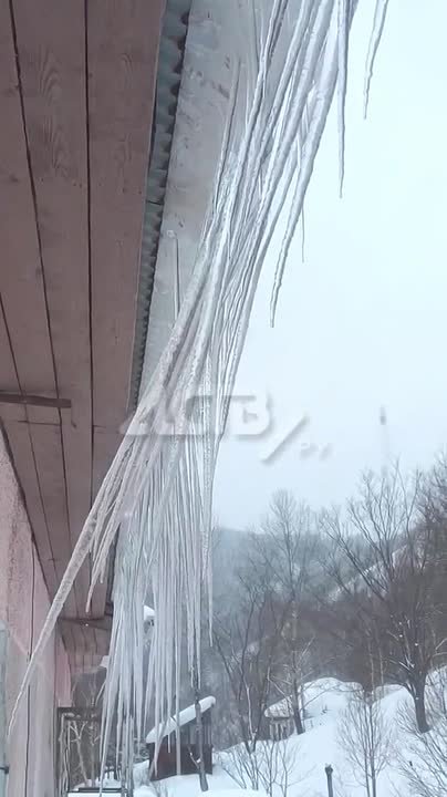 Ситуацию усугубило и потепление. Теперь с крыши на пешеходов во дворе грозят свалиться большие сосульки, которые также не сбивают.