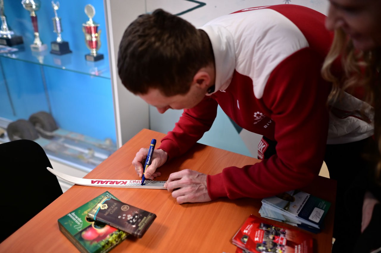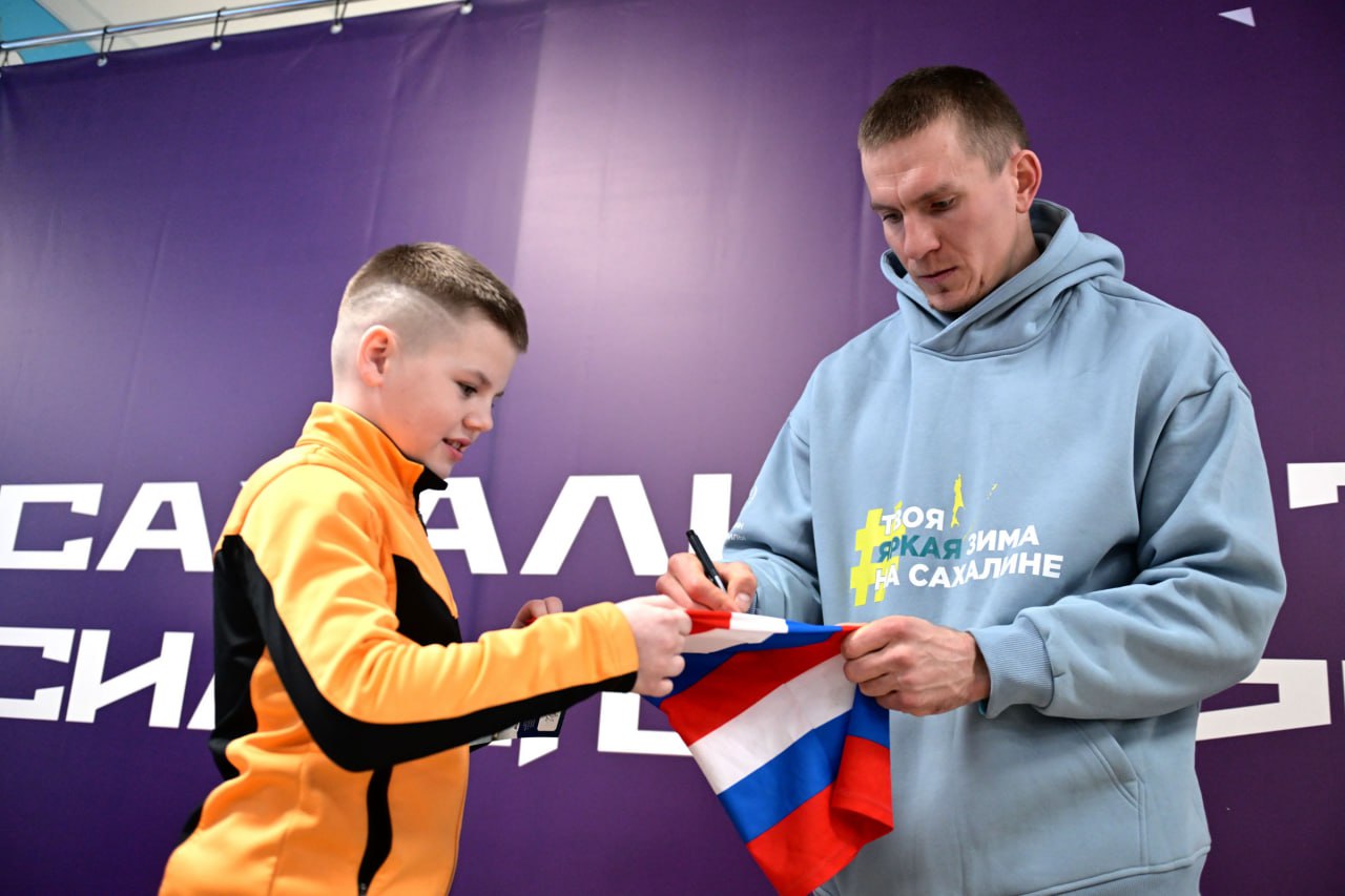 На лыжно-биатлонном комплексе "Триумф" прошла автограф-сессия с известными российскими лыжниками. Чемпионы и призёры Олимпийских игр, мира и России — Александр Большунов, Денис Спицов и Алексей Червоткин — встретились с болельщиками и поделились своими впечатлениями об островной земле.