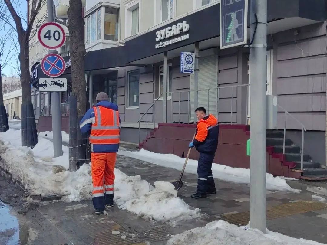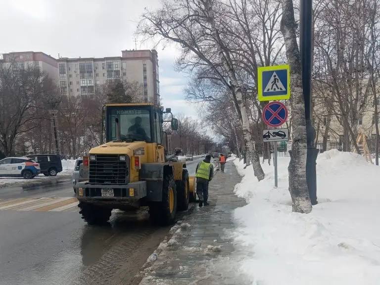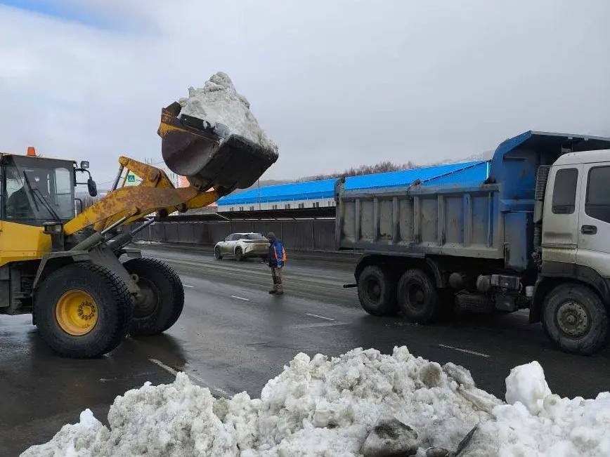 Бригады и техника работают на дорогах и тротуарах, чистят автобусные павильоны, а также вывозят снег. Работа ведётся в режиме 24/7.