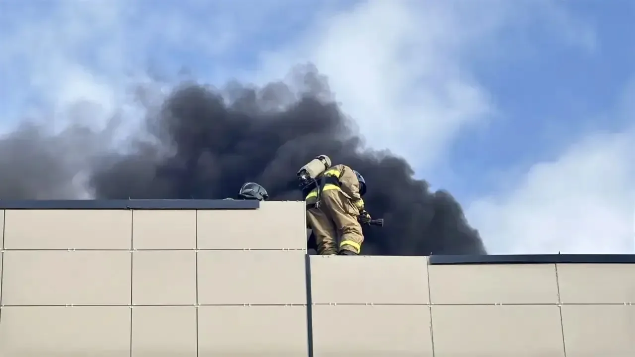 Кровля строящегося дома горит в Южно-Сахалинске