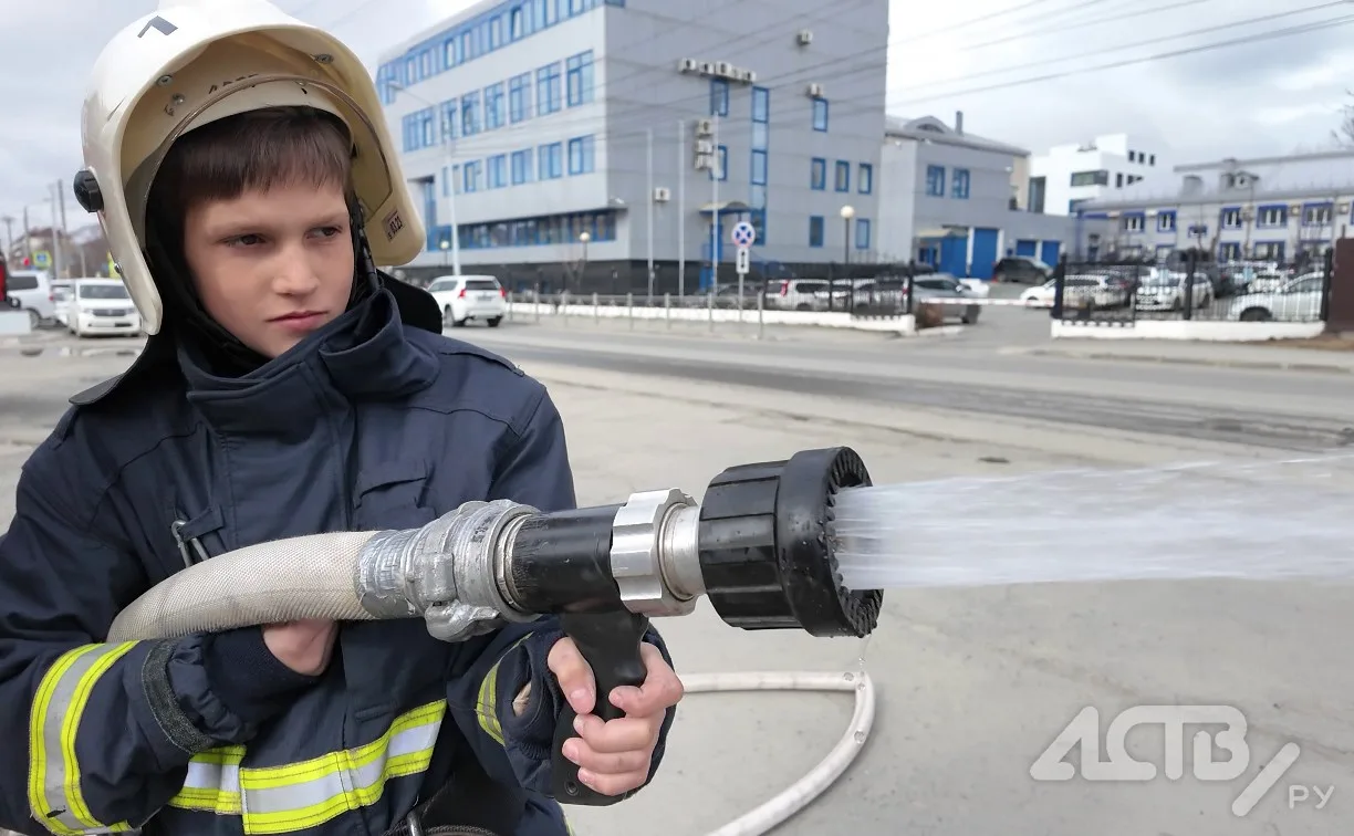 В боевой экипировке и с подарком: в Южно-Сахалинске спасатели встретились со школьником, потушившим пожар