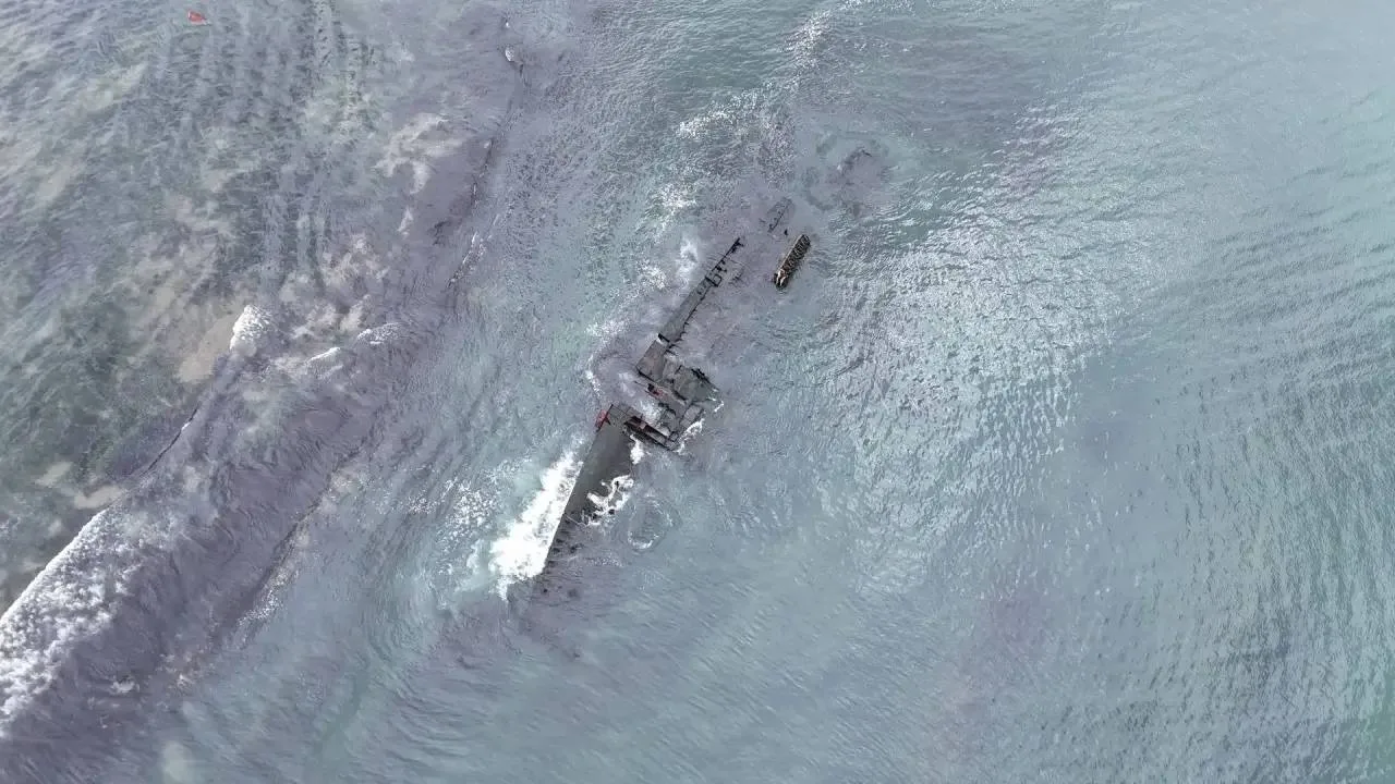 Сейчас специалисты формируют «мертвый якорь», за который будут закрепляться полипласты и тяговое оборудование. Когда судно вытянут на берег, его останки порежут и утилизируют.