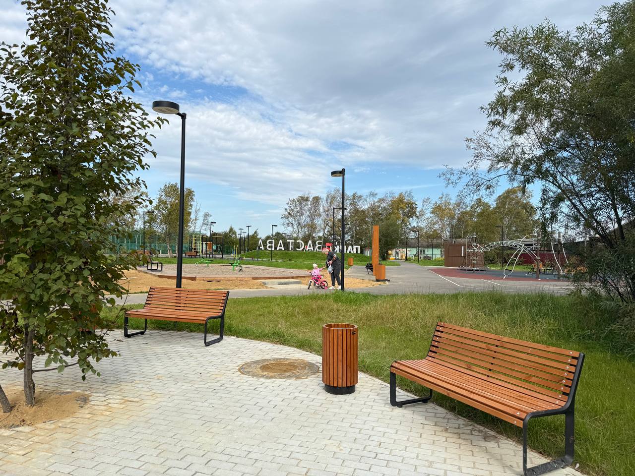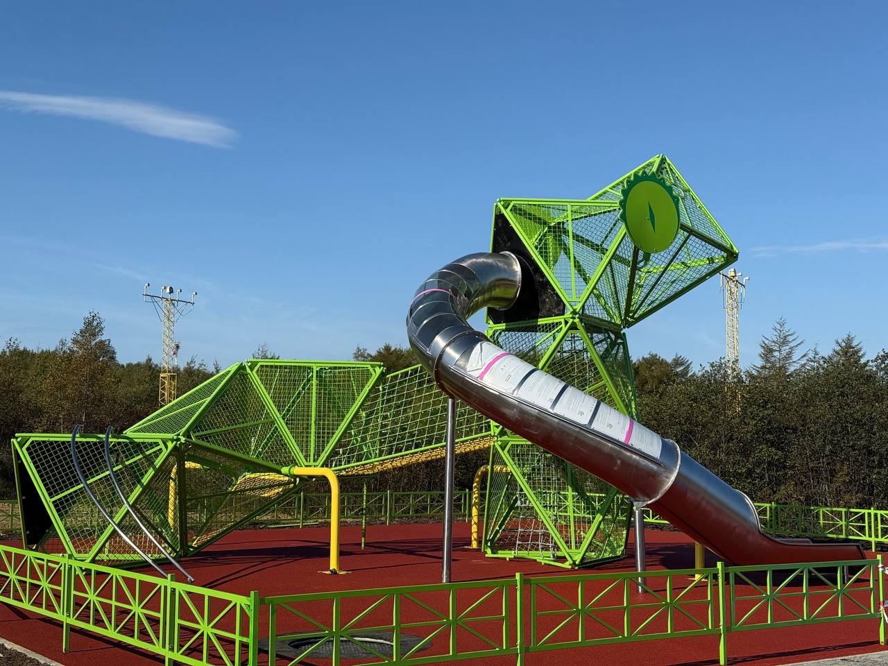 Современную игровую зону в микрорайоне ОГРЭ обустроили по просьбам жителей микрорайона и благодаря федеральной программе. В итоге многолетний пустырь превратился в островок радости для детей и отдыха для взрослых: большая горка, конструкция для лазания «Хамелеон», батуты, качели, удобные скамейки.