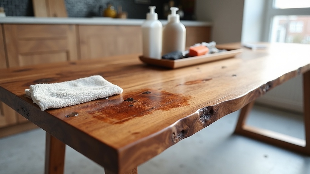 После первоначального промокания стоит определить, какая именно загрязняющая жидкость попала на стол, а также из какого материала изготовлена поверхность. Дерево может реагировать по-разному, в зависимости от типа покрытия – будь то лак, масло или эпоксидная смола.