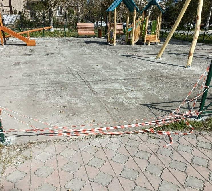 Городские власти обратились к родителям в своем телеграмм-канале с просьбой разъяснить своим малышам, что на территорию площадки временно нельзя заходить. Это связано с работами, которые проводят на площадке – вход перекрыт лентой.
