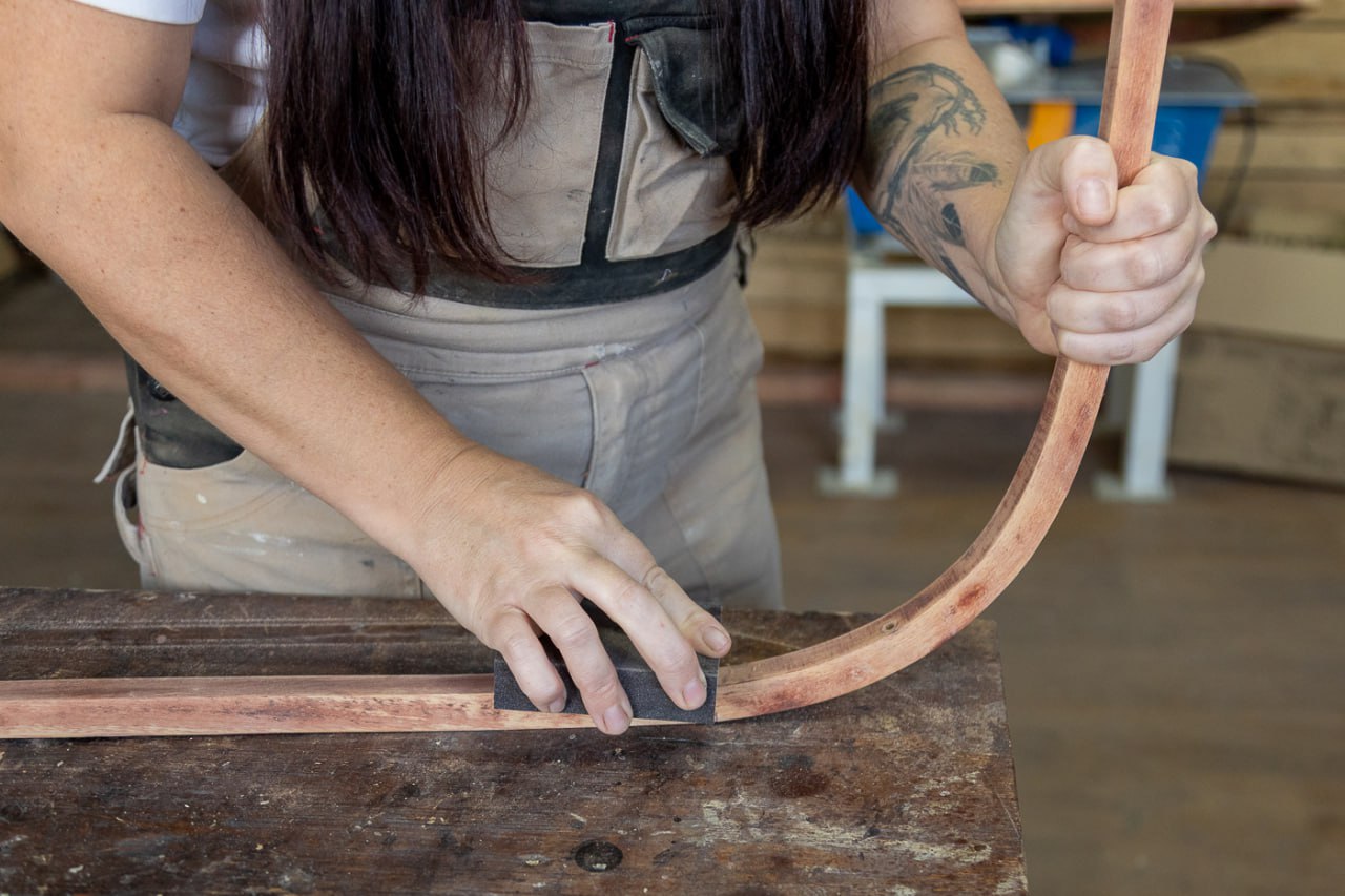 Ксения не просто ремонтирует мебель, а даёт старинным вещам вторую жизнь. В её мастерской уже побывали предметы без малого с вековой историей. Сейчас на столярном столе - советская кушетка 50-х годов. Проекты реставрации Ксения разрабатывает самостоятельно.