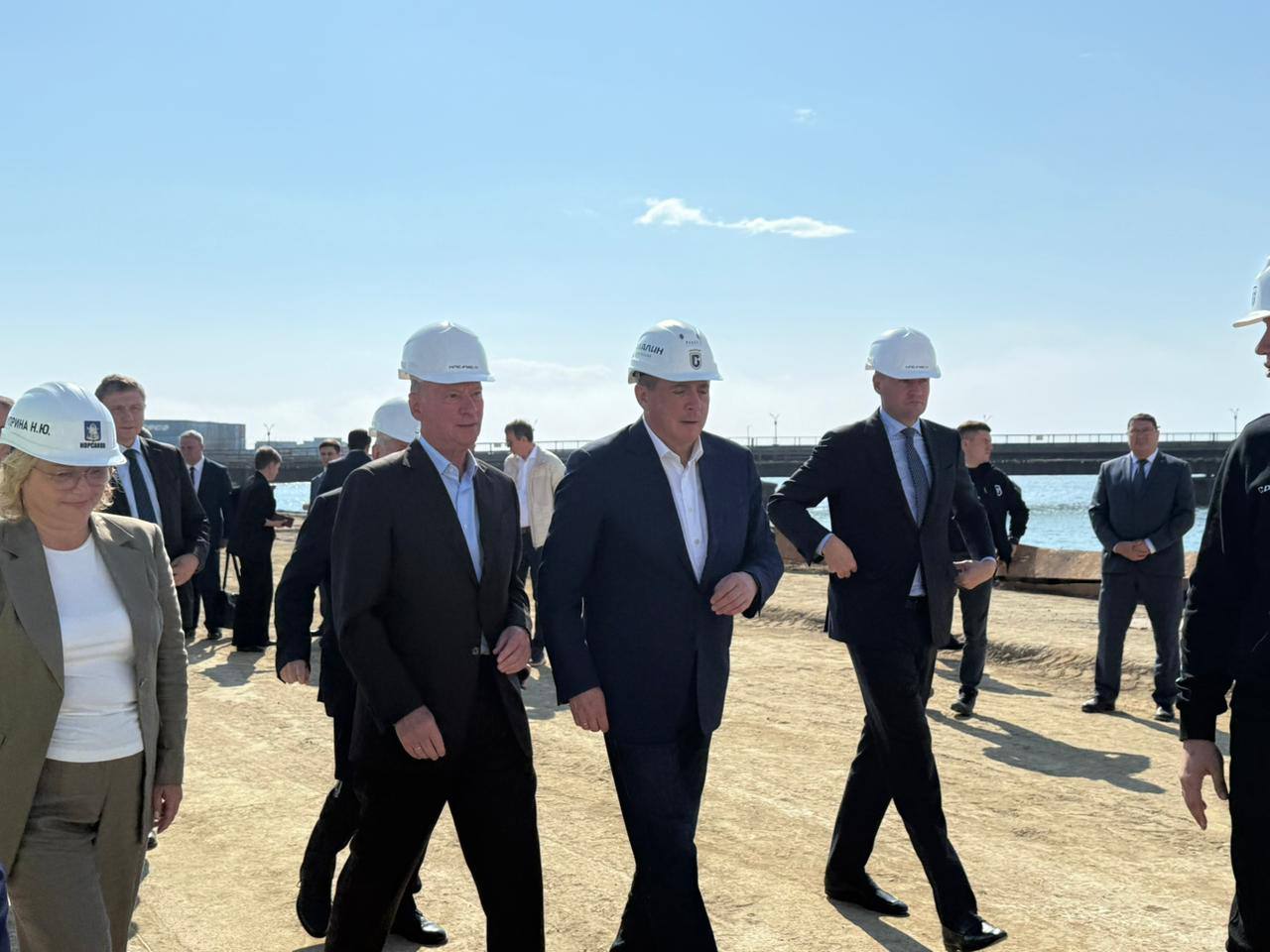 В порту Корсакова он лично осмотрел реконструкцию объекта. Так, один из причалов здесь станет длиннее, сейчас идут работы по его наращиванию. Это позволит одновременно принимать несколько судов. Также модернизируют мост - после на нем можно будет устанавливать краны для подъема контейнеров, что ускорит разгрузку.