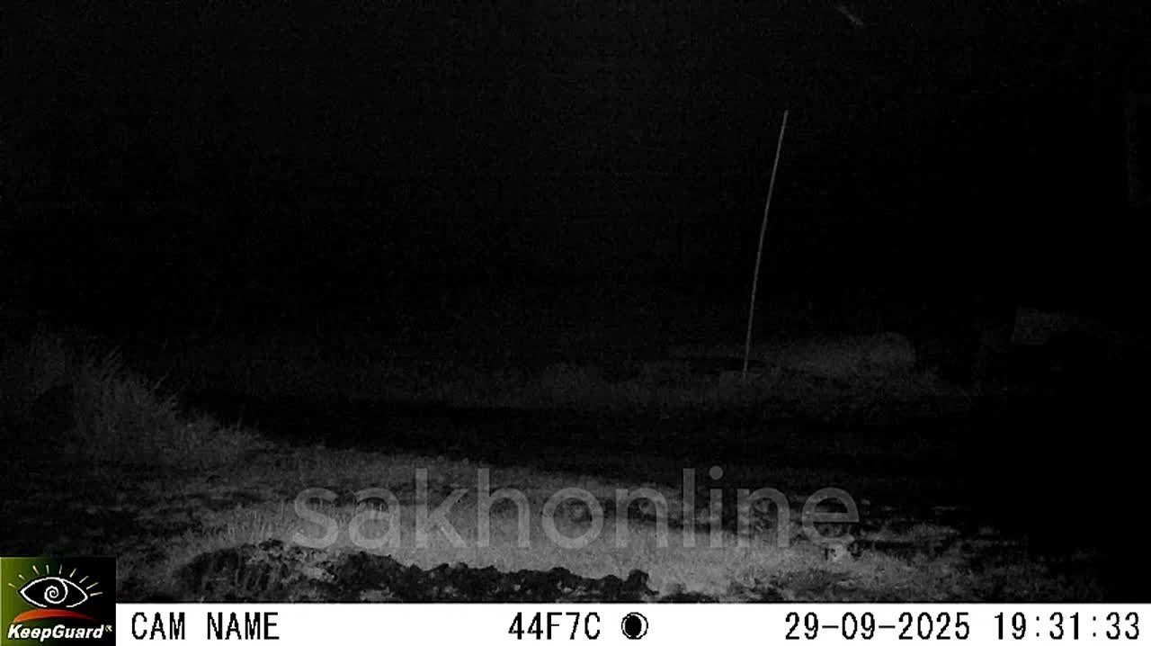 Неспешный променад лисы и медведей со светящимися огоньками глаз попал на камеру наружного наблюдения.