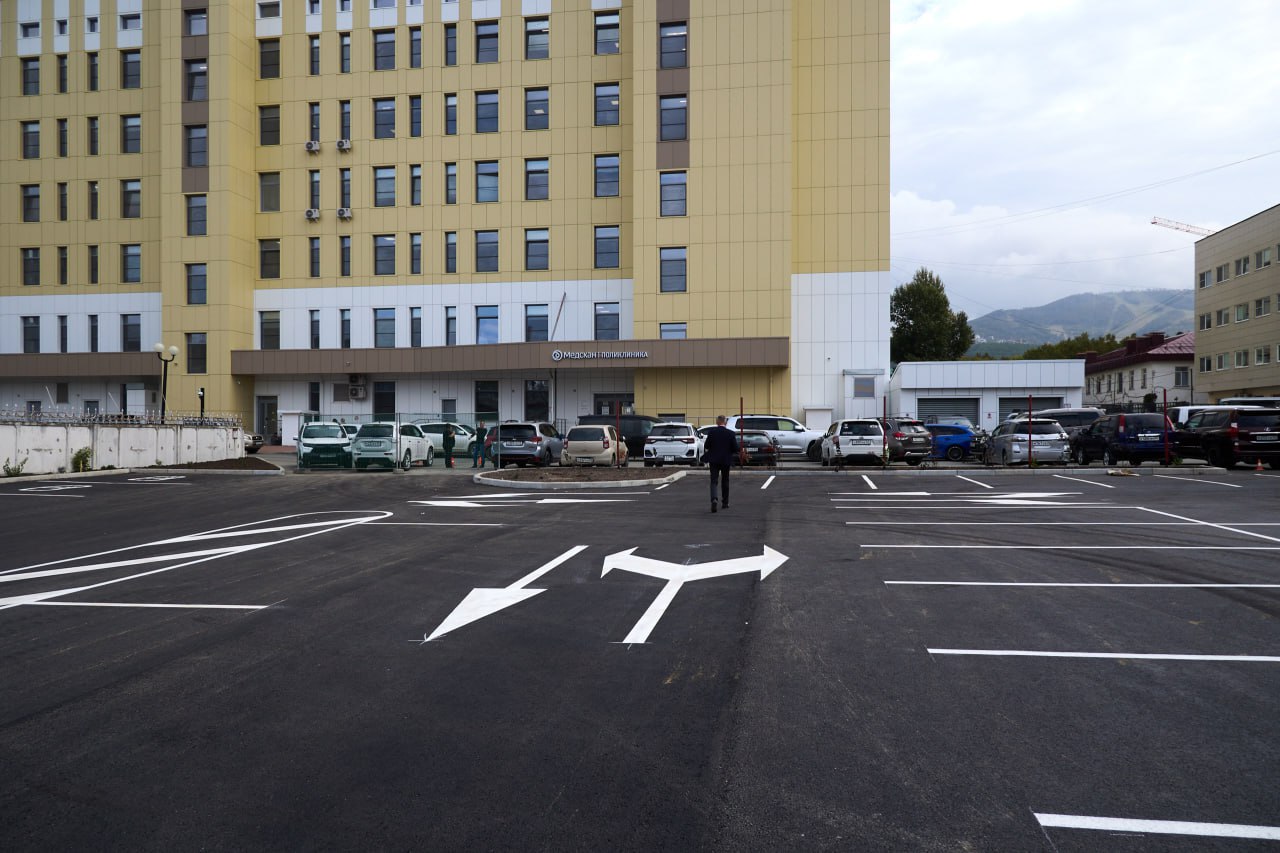 Компании понадобилось две недели, чтобы превратить грунтовку в парковочное пространство на 66 машиномест. Также в рамках благоустройства строители сделали зелёную зону, облагородили территорию — посадили саженцы: кедр, сакуру, клён и красные дубы.