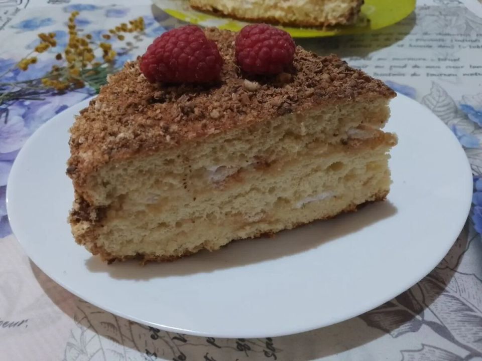 Этот восхитительный бисквитный торт — настоящая находка для любителей сладостей. С воздушным кремом, приготовленным на основе сметаны и сливок, а также с нежным безе он станет ярким акцентом на любом столе. Пирожное можно приготовить не только к торжествам, но и для уютного вечернего чаепития.