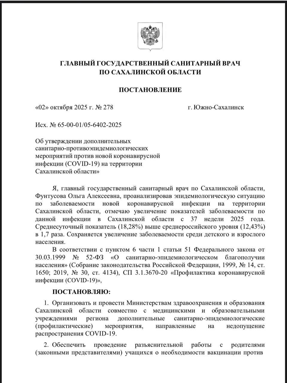 В правительство Сахалинской области опровергли эту информацию: никаких новых ограничений вводиться не будет, а эпидемиологическая ситуация остаётся стабильной и контролируемой.