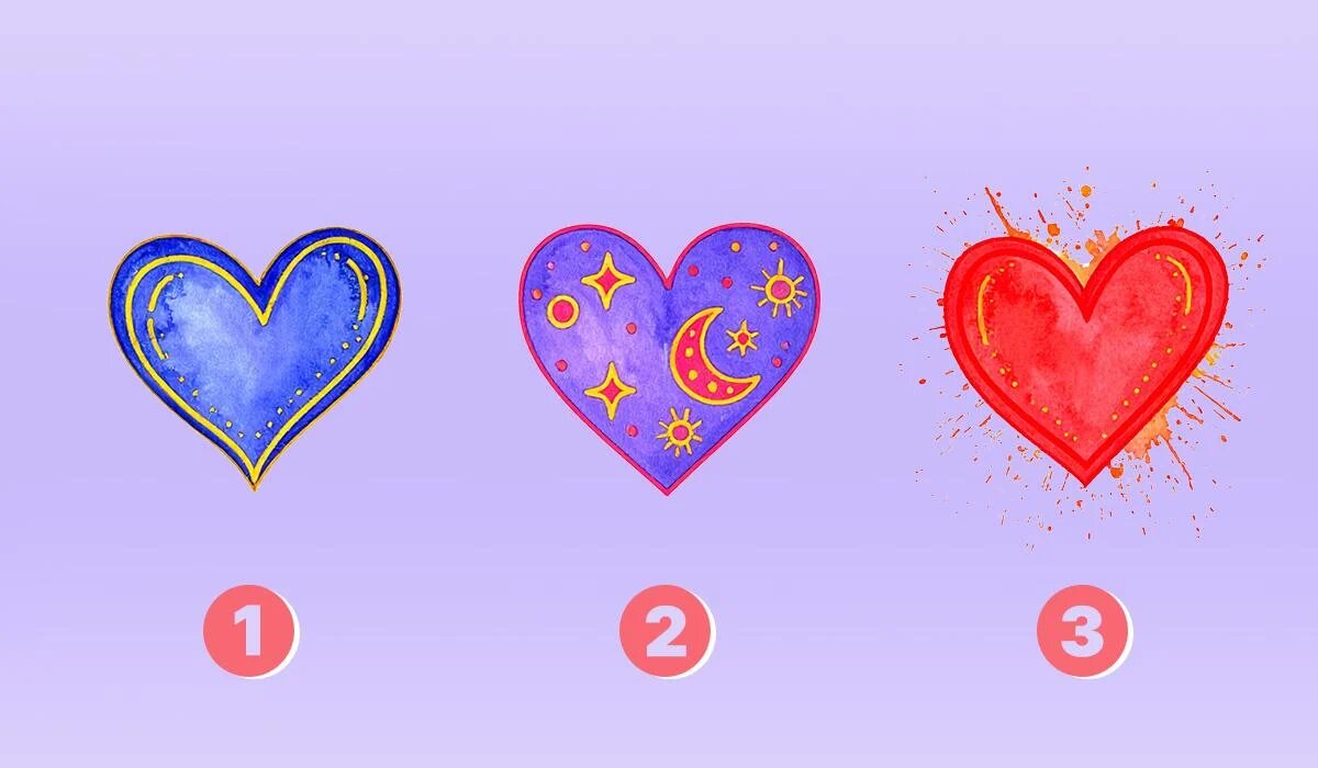 Чтобы пройти тест, достаточно выбрать одно из трёх представленных сердец: красное, фиолетово-розовое или синее. Каждый из этих выборов символизирует разные аспекты личных предпочтений и характерных черт, которые могут повлиять на отношения.
