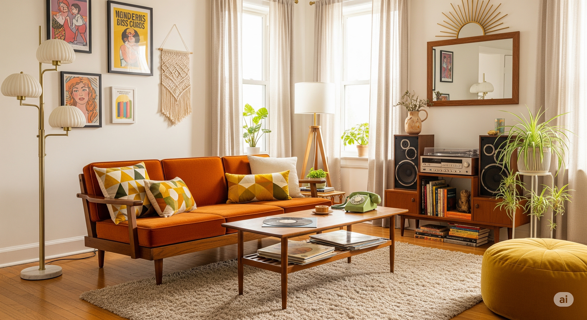 Ретро-эстетика охватывает целую эпоху, от ярких оттенков 60-х до мягких тонов 80-х. Чтобы создать гармоничное пространство, стоит уделить внимание следующим аспектам: