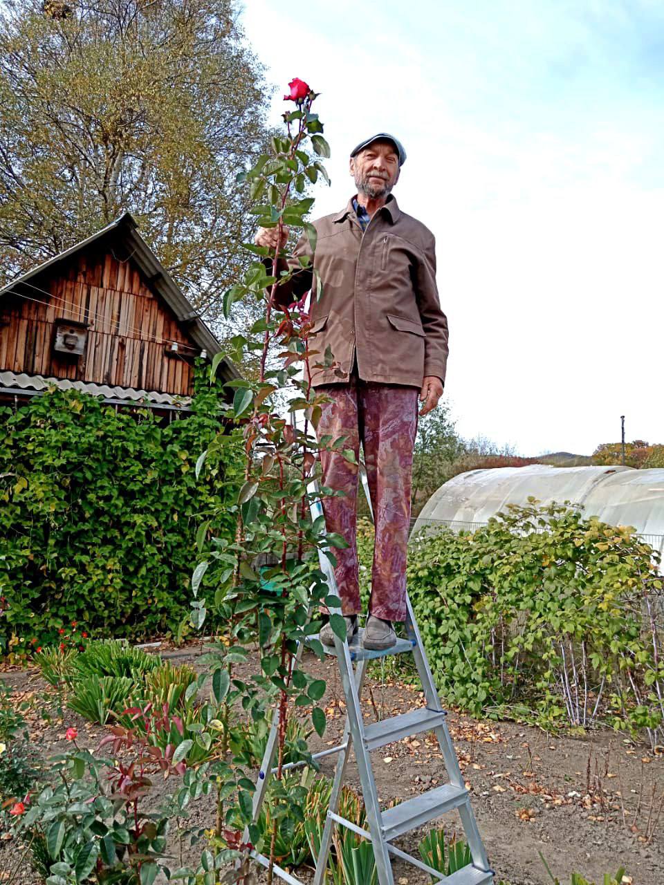 Без стремянки не обойтись: в Приморье пенсионер вырастил трехметровую розу