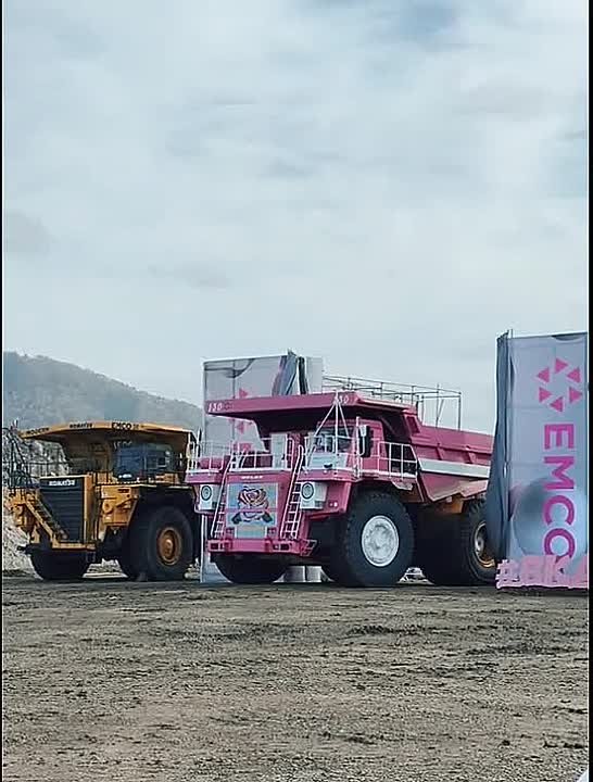 Гламурненько. В соцсетях расходится видео первого в России розового карьерного самосвала БелАЗ — он работает на Сахалине, рассказали в Восточной горнорудной компании.