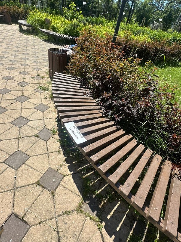 в сквере "Белые цветы" восстановили деревянные лавочки, покрасили малые архитектурные формы и убрали мусор на территории