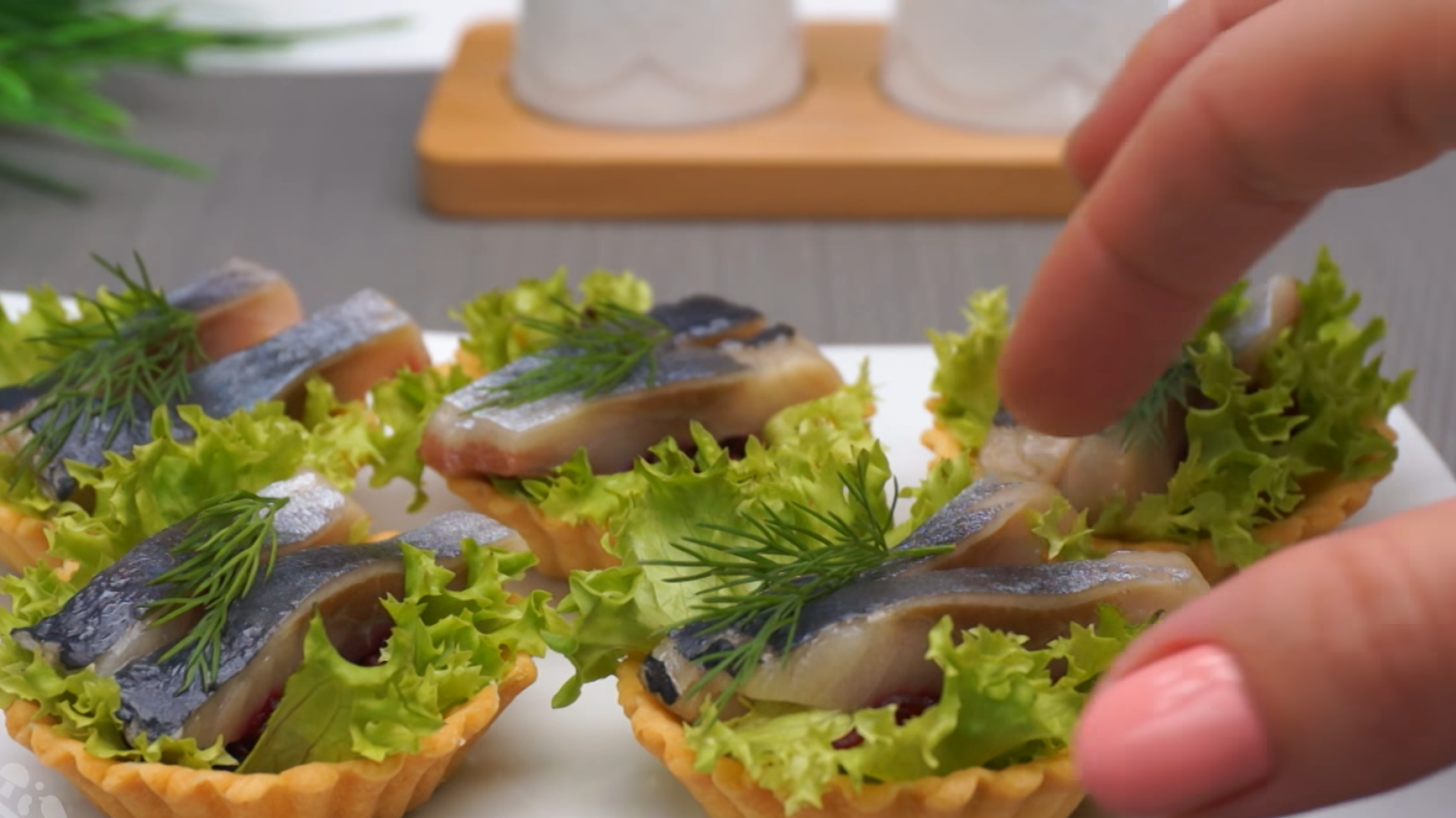 Не все хозяйки подают на новогодний стол несколько видов салатов, предпочитая делать акцент на закусках. В таком случае не приходится стоять у плиты с самого утра. Вполне приемлемо оставить в меню оливье, а вместо селедки под шубой подать вкусные тарталетки.
