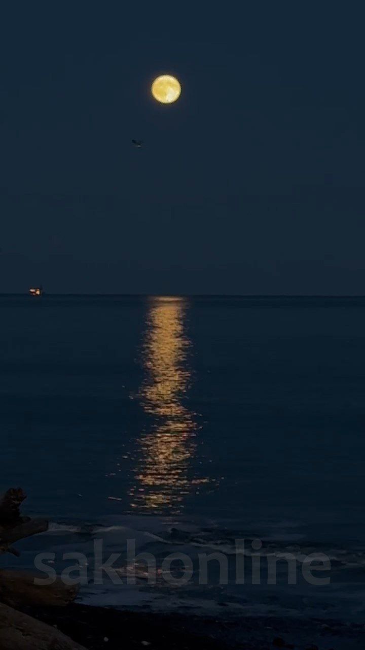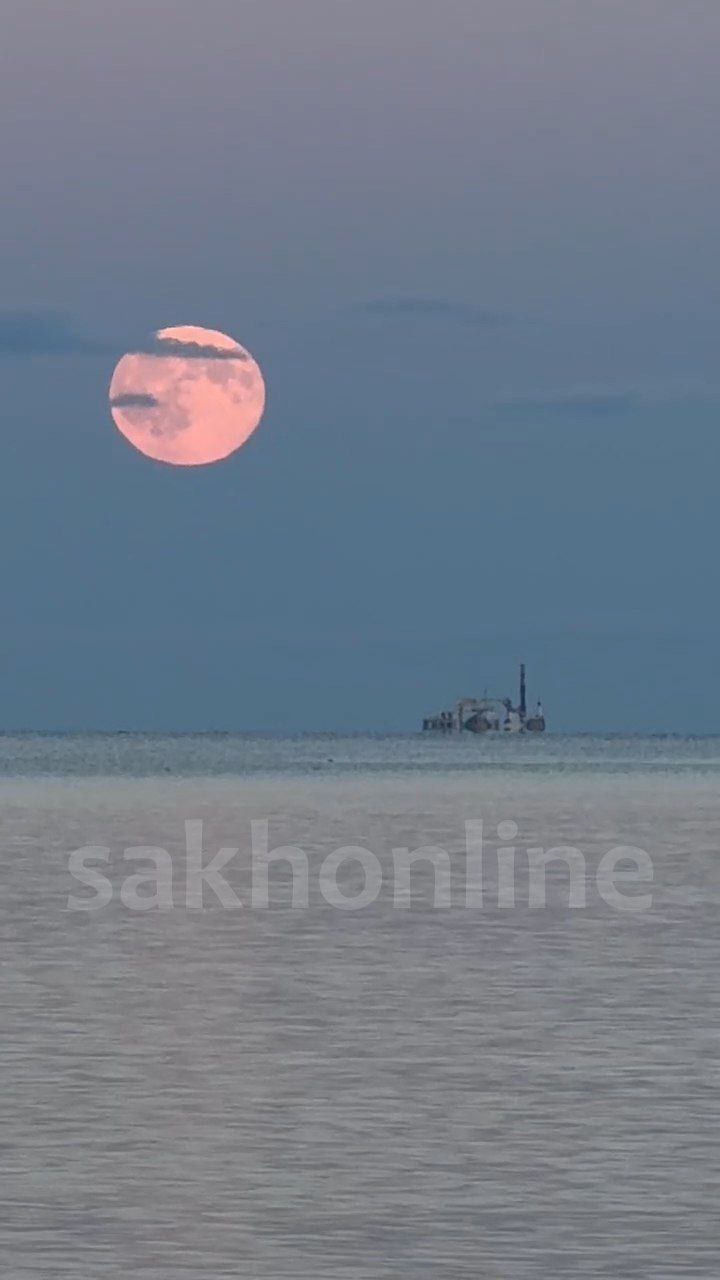 Первое суперлуние 2025 года Урожайная Луна сняли в Поронайске над заливом Терпения