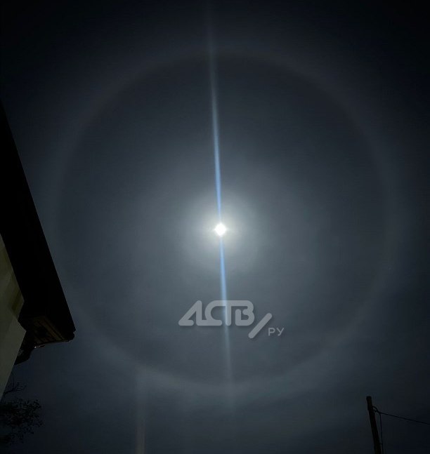 Суперлуние в небе над Сахалином подсветило гало