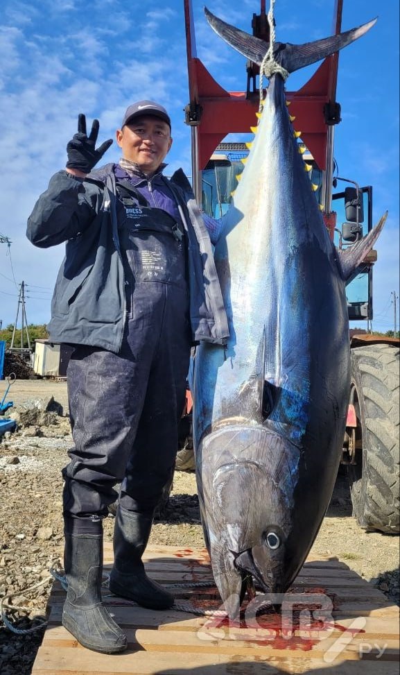 Тунцы-"монстры" подошли к берегам Сахалина в начале октября. Накануне рыбин весом свыше 200 килограммов выловили сразу несколько экипажей катеров. Подцепить гиганта на удочку — дело нехитрое, отмечают рыбаки. Но на то, чтобы выудить его, затащить на судно и доставить на берег, может потребоваться до семи часов.