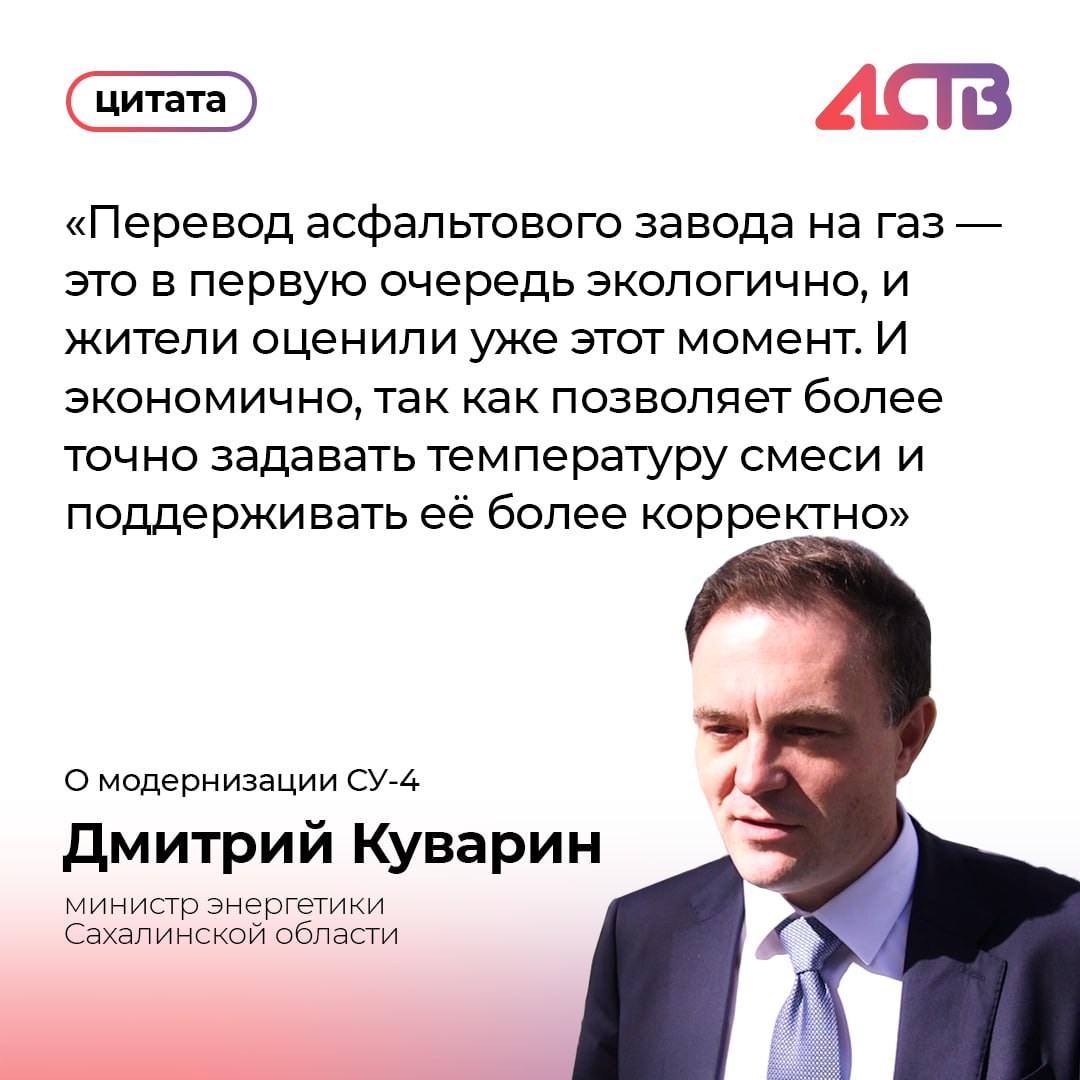 Южно-сахалинский асфальтовый завод предприятия СУ-4 перешёл на газ с дизельного топлива. Это сразу отразилось на качестве выбросов в атмосферу. Помимо ощутимого экологического эффекта модернизация дала и экономический - производство асфальта стало технологичнее. Об этом сообщил министр энергетики Сахалинской области Дмитрий Куварин.
