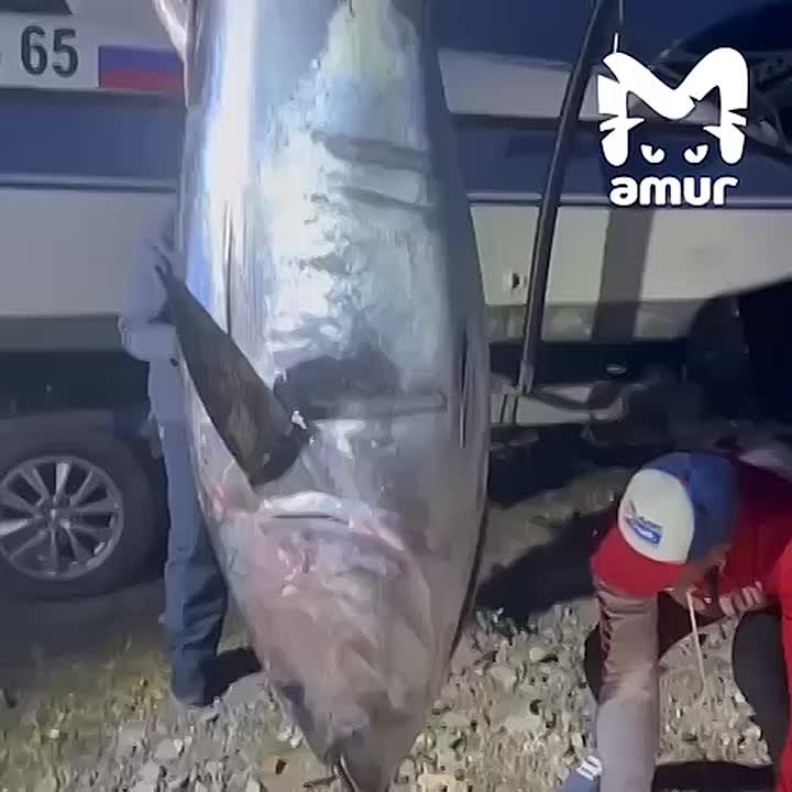 Тунцы-гиганты всё чаще попадаются в Долинском районе, рекордсмен вытянул на 215 кг. Мужики охотятся на таких рыбёх в среднем по пять часов, вытягивают из лодок погрузчиком или небольшим экскаватором.
