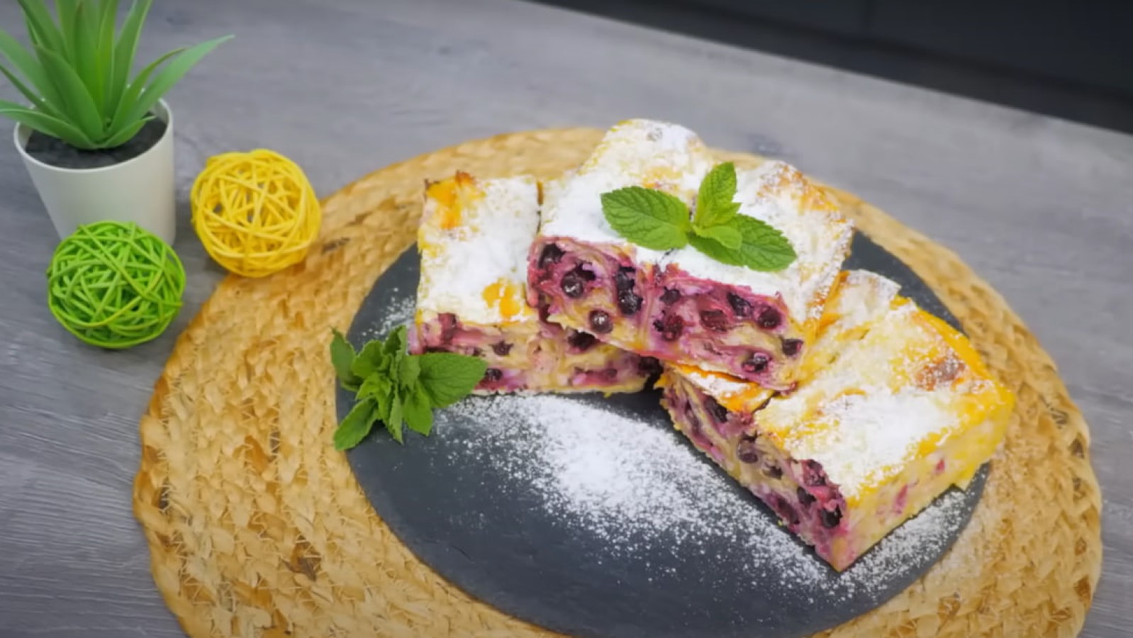 Форму отправьте в духовку на полчаса при температуре 180 °C. Когда пирог остынет, его можно подавать на стол. Отлично подходит к чаю или охлажденным напиткам, советует автор YouTube-канала «Вкусно и полезно».
