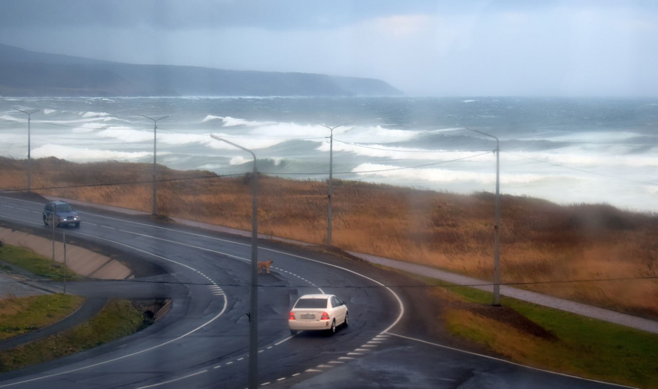 Назвать такое утро добрым язык не повернётся: ветерок курильский разгулялся и морюшко Охотское разболтало. Господа автомобилисты, будьте осторожны при движении, особенно, когда будете ехать по Приморскому шоссе,