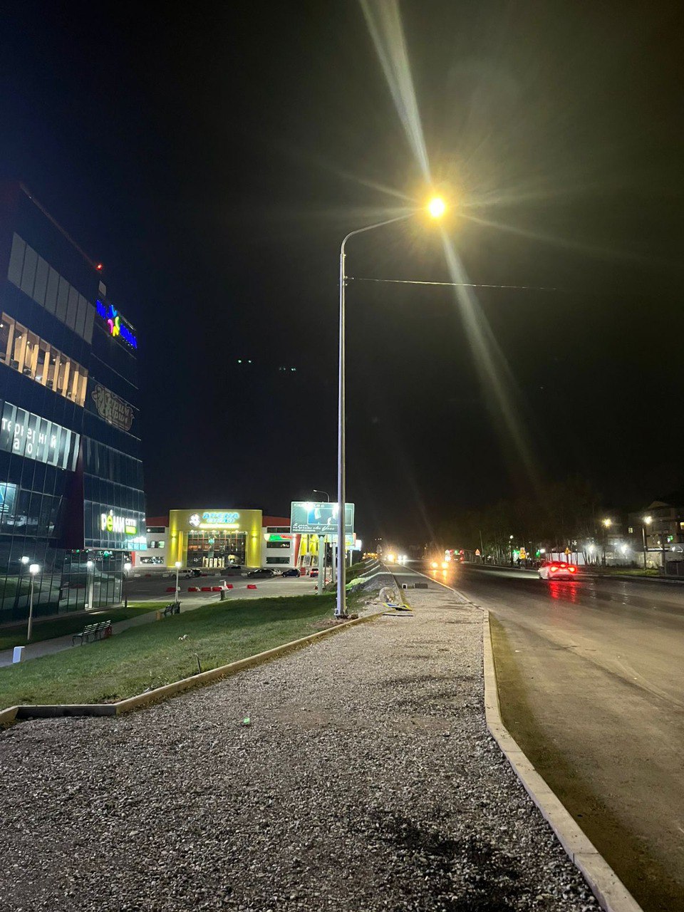 Опорные столбы со светильниками на оживленном пешеходном переходе у ТРК «Сити Молл» были смонтированы и подключены 8 октября. На прошлой неделе аналогичные работы были выполнены возле спорткомплекса «Аква Сити». После окончания капитального ремонта автодороги на этих участках будут установлены постоянные опоры уличного освещения и светофоры,