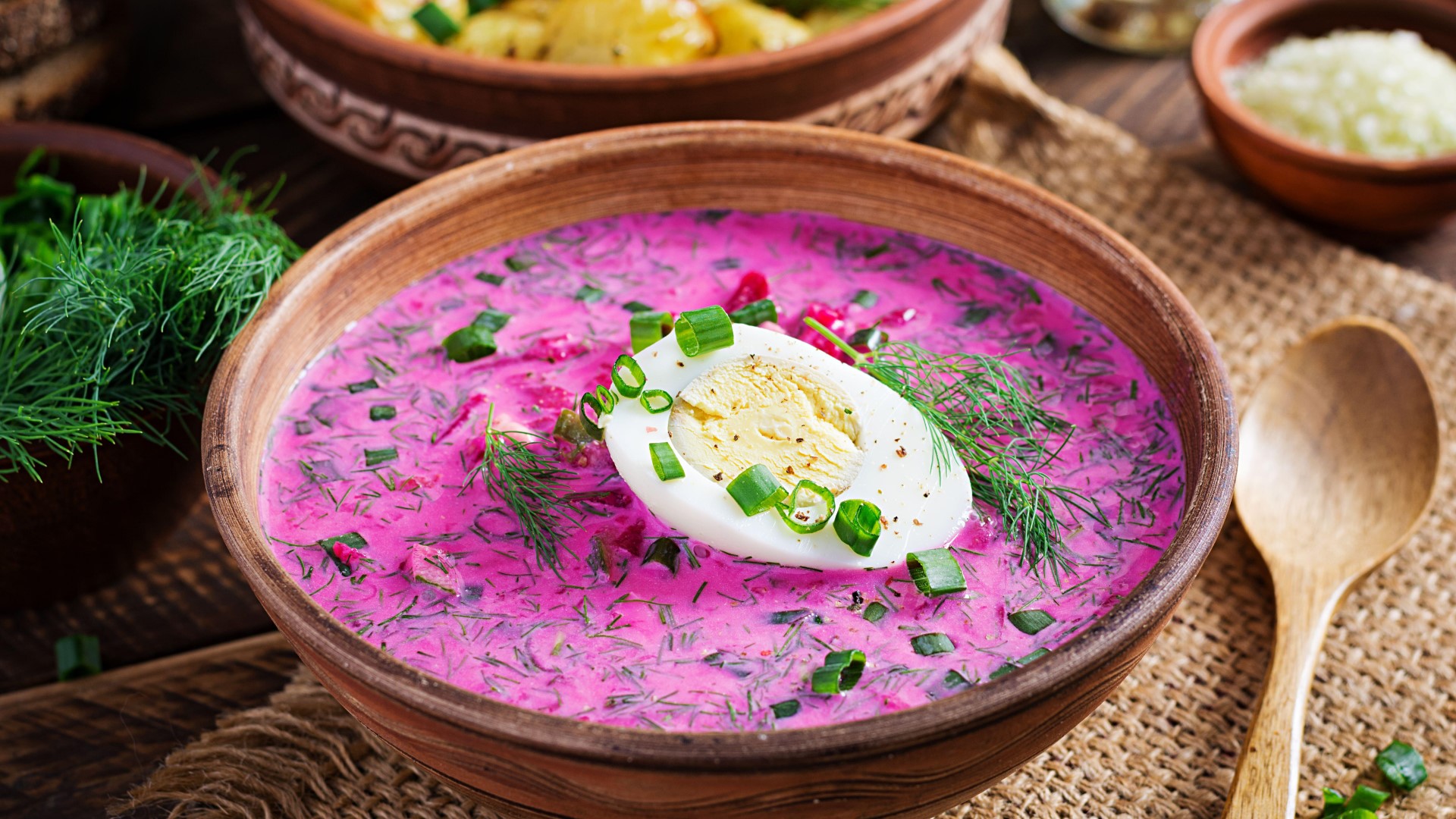 Освежающий холодный борщ ничуть не уступает по вкусу популярной окрошке. К тому же овощная заготовка сэкономит время. Проголодавшись к ужину, можно просто достать ее из холодильника и залить охлажденным бульоном.