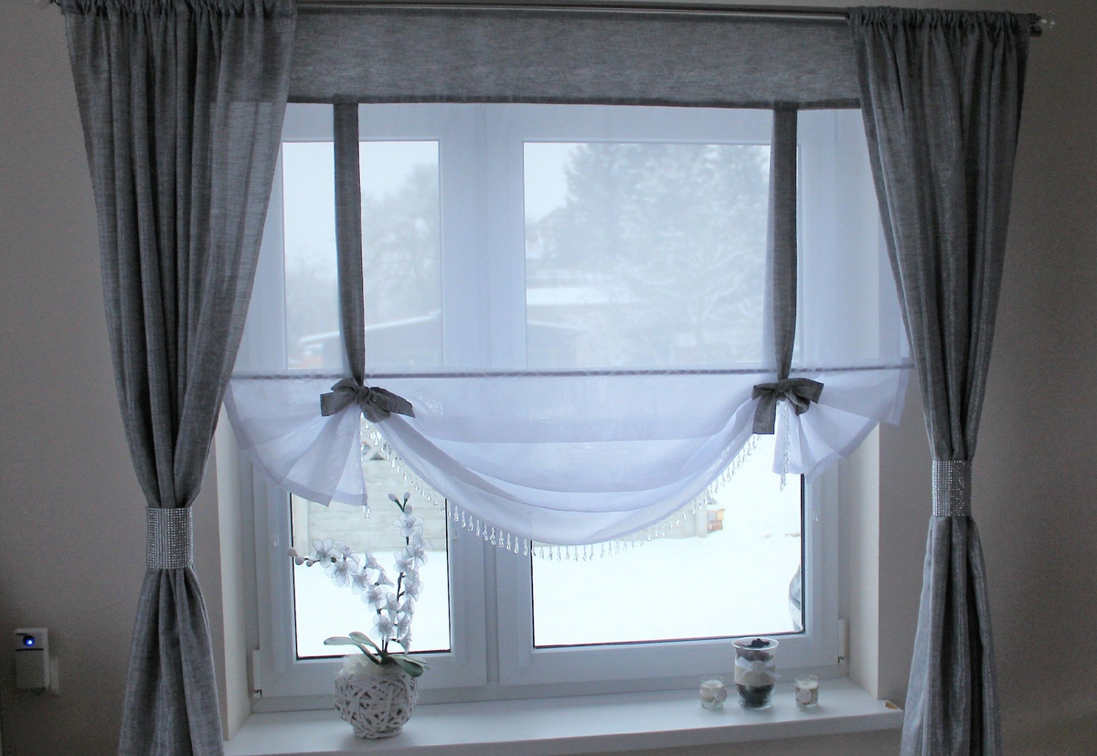 - Короткие шторы. Когда-то короткие шторы на кухне считались нормой, но теперь они кажутся устаревшими. Для создания современного образа лучше выбирать легкие полотна до пола или стильные рулонные шторы, избегая офисных вертикалей.