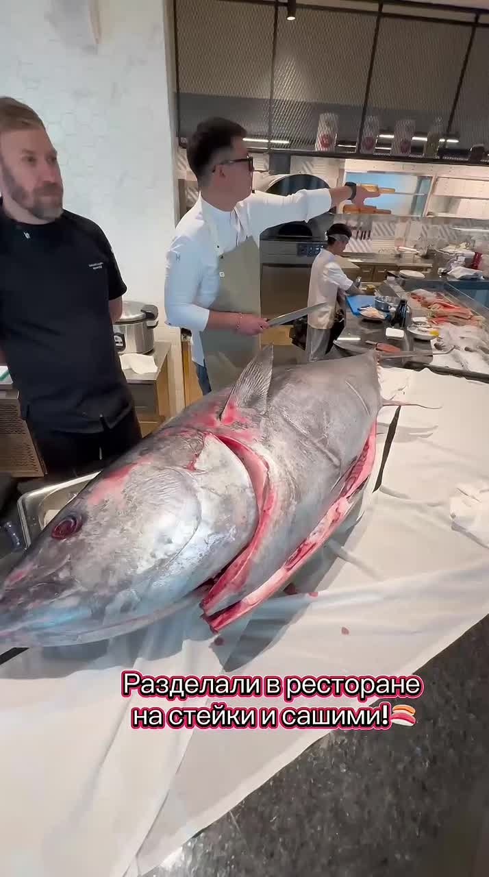 В заведении разделали рыбину весом 215 кг. Процесс - непростой и завораживающий - сняли на видео и опубликовали в @smotri_65.