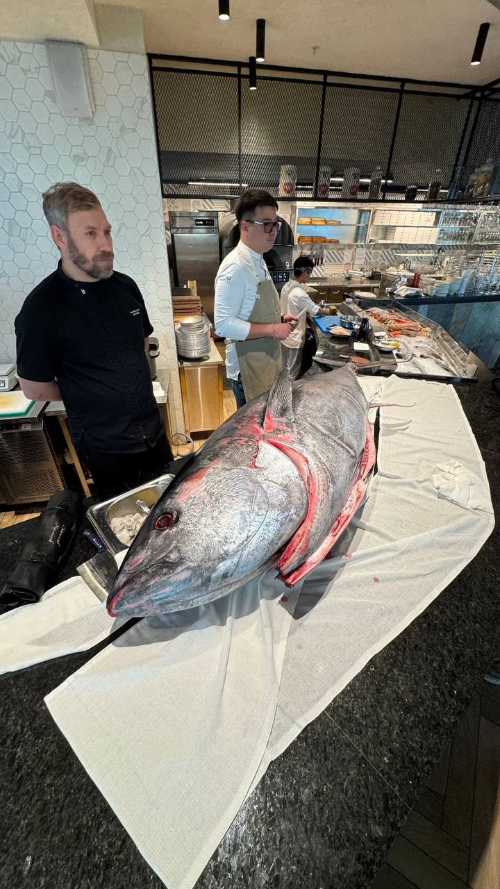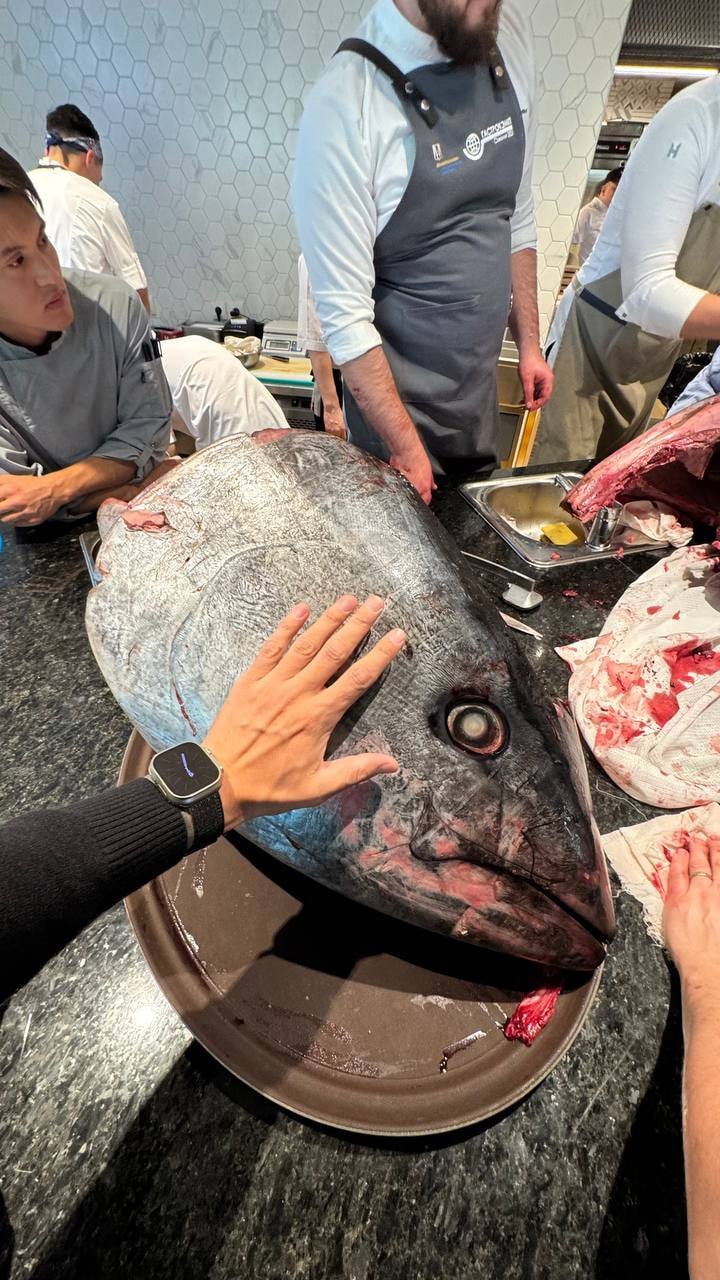 Гигантского тунца разделали в одном из сахалинских ресторанов