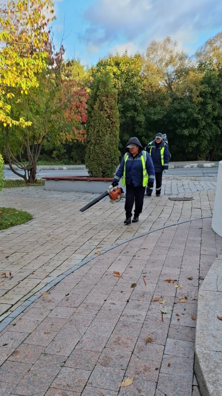 Пока осень сбрасывает красочные одеяния с деревьев, наши коммунальные службы своевременно приходят на расчистку городских улиц.