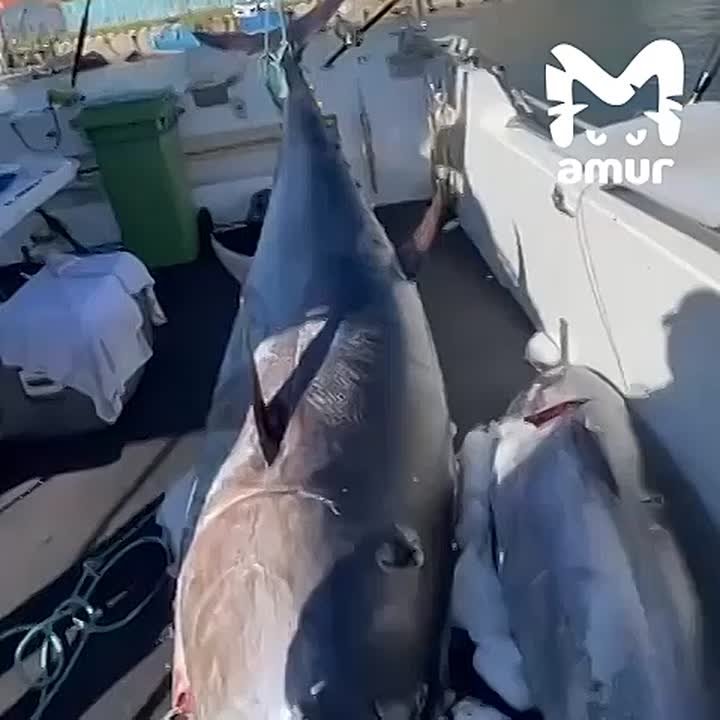 Громадины весом в 150-215 кг повадились и в Долинский район Сахалина — всё из-за аномально прогретой воды. Рыб пускают на стейки и сашими в местных рестиках. Также в тех водах встречаются акулы-молоты, белые и фугу.