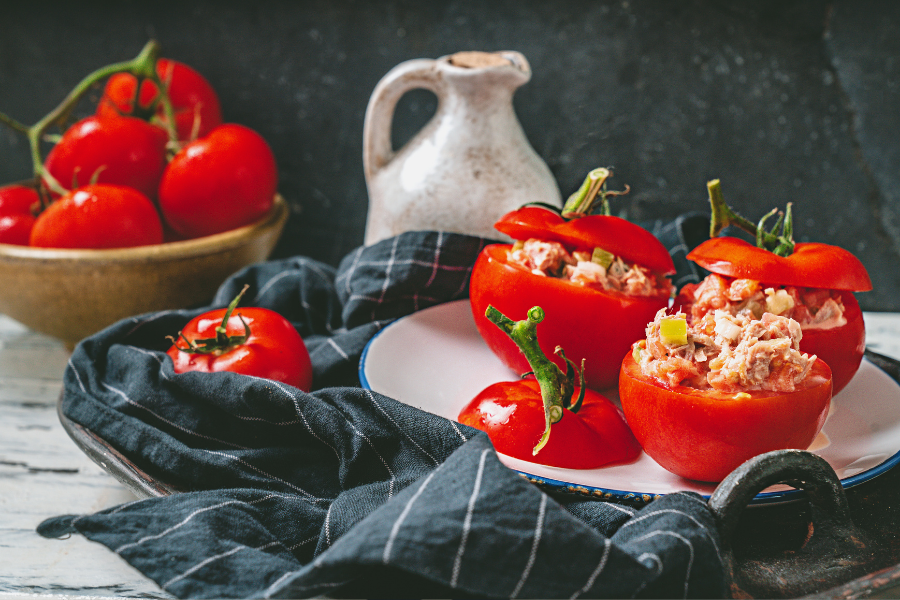 5. Начините каждую помидорку полученной смесью, накрывая их верхушками.