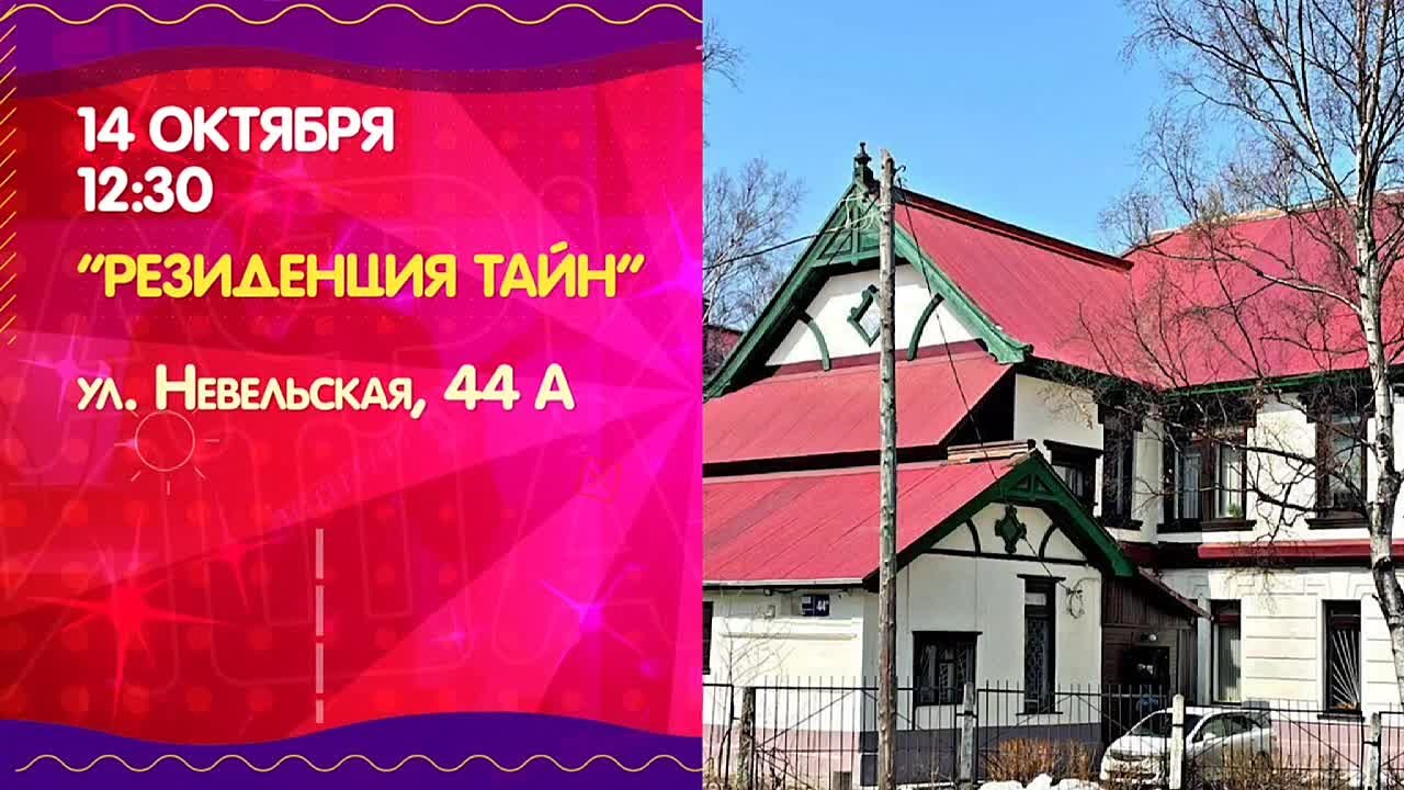 С 12:30 до 15:00 жителей и гостей Южно-Сахалинска приглашают на экскурсию «Резиденция тайн» по самому старому зданию города. Адрес явки — улица Невельская, 44а.