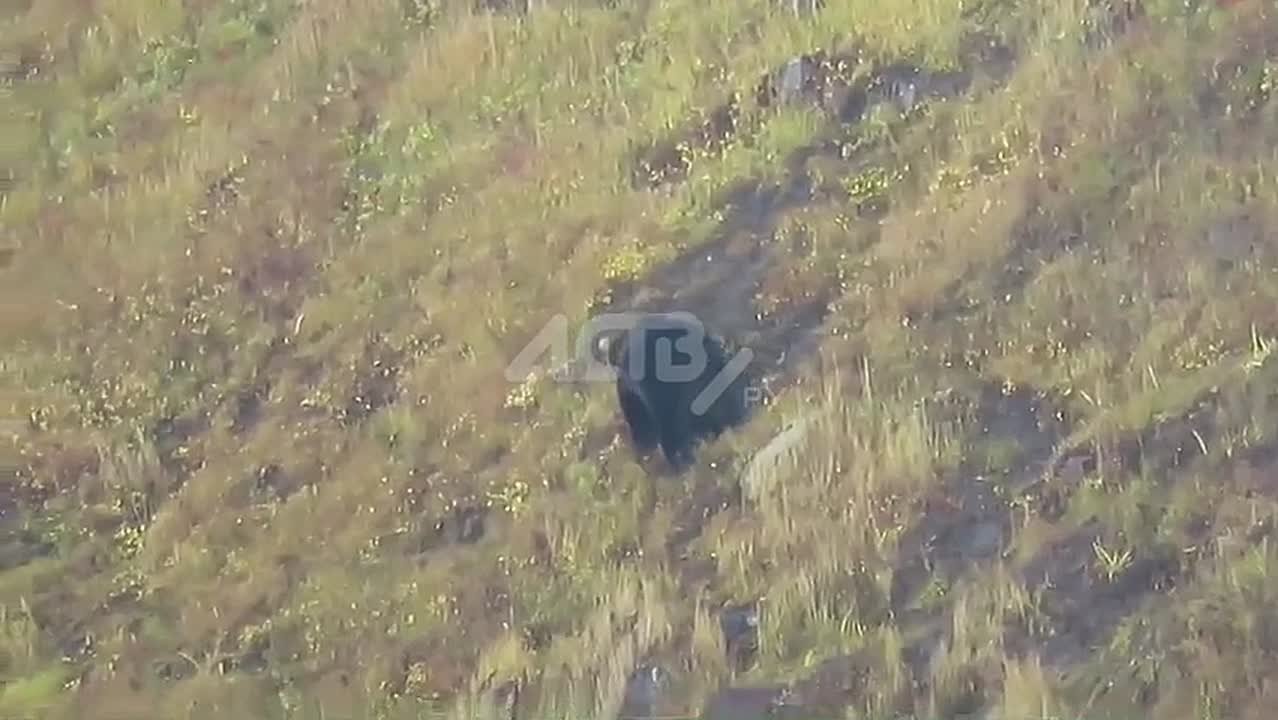 Нелёгкий путь в гору крупного мишки попал на видео на Курилах