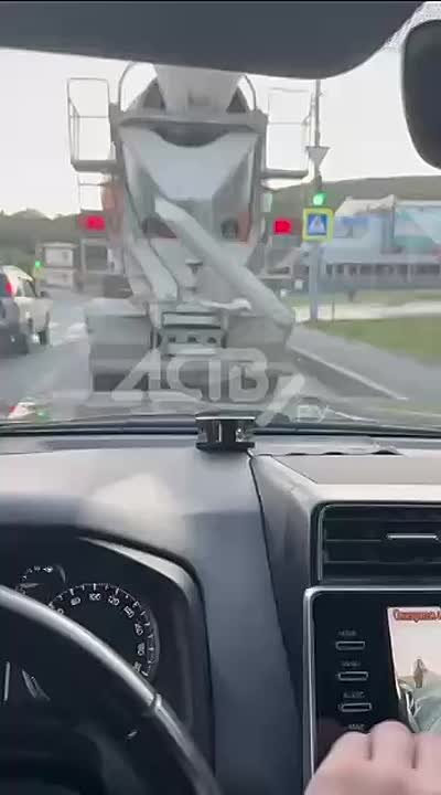 "Стоит, а с него бетон льется. На проезжей части образовалась "каша", которую пришлось объезжать", — поделились с astv.ru автомобилисты.