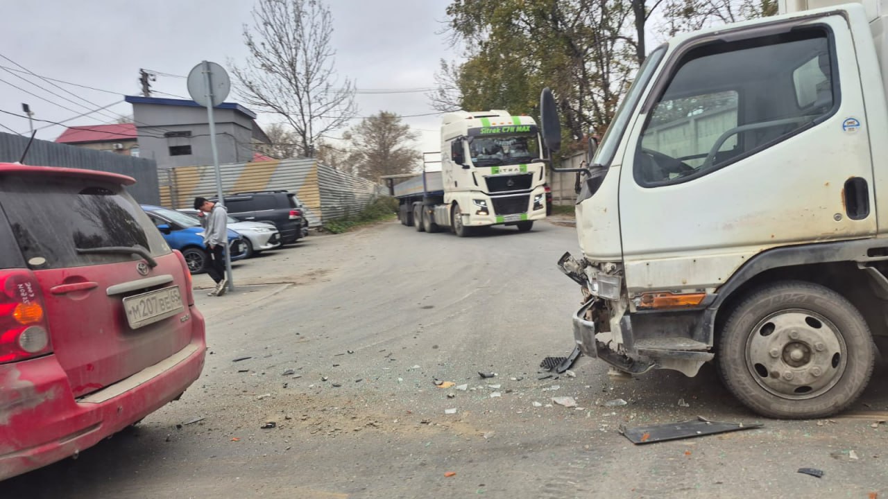 ДТП перед перекрестком Победы и Железнодорожной. Тойота Раум и грузовик как-то умудрились не поделить полосу. Пострадавших нет.