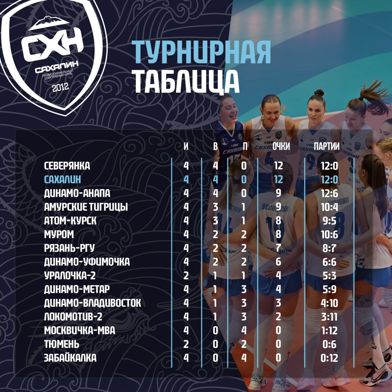 Со счётом 3:0 в каждой игре волейбольная команда «Сахалин» одержала 4 победы в 4 матчах, не уступив ни одной партии своим соперникам и уверенно закрепилась на 2 месте