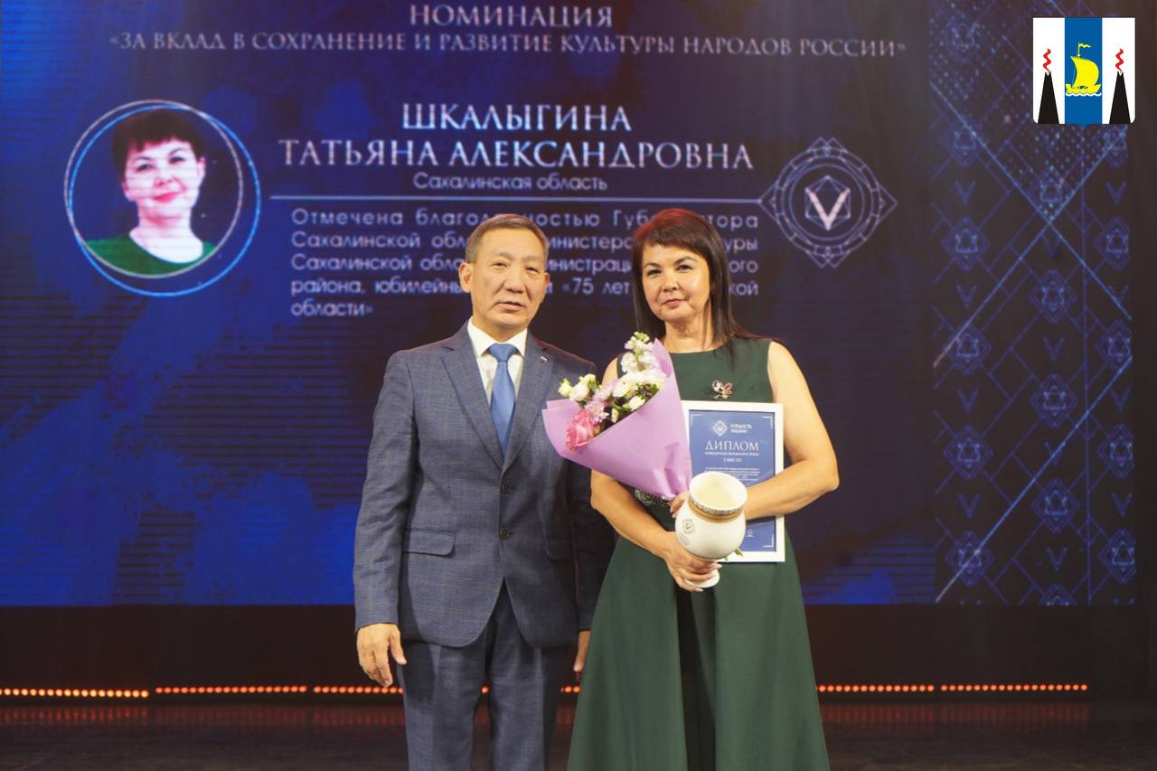 Победителем в номинации «За вклад в сохранение и развитие культуры народов России» стала Татьяна Шкалыгина, заведующая этнокультурным центром села Чир-Унвд Тымовского района.