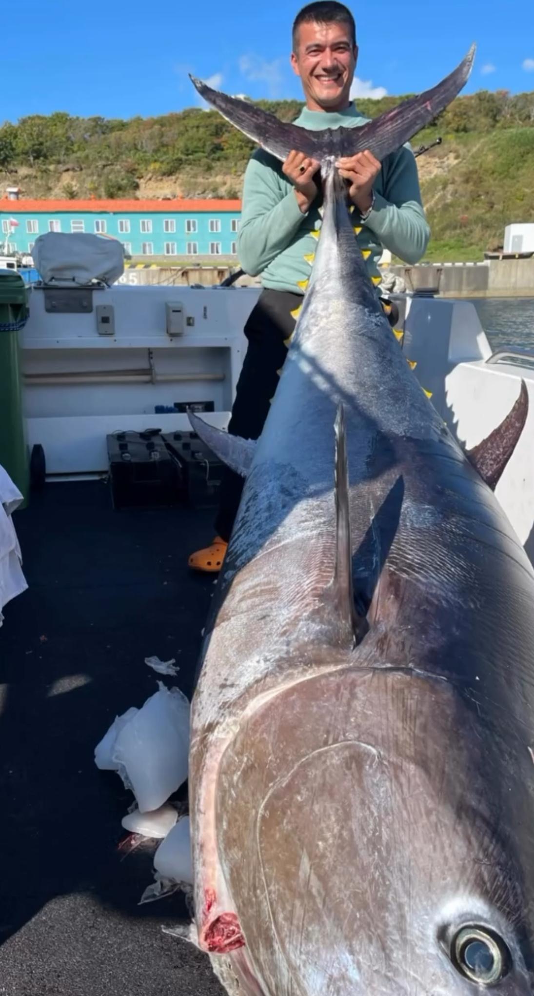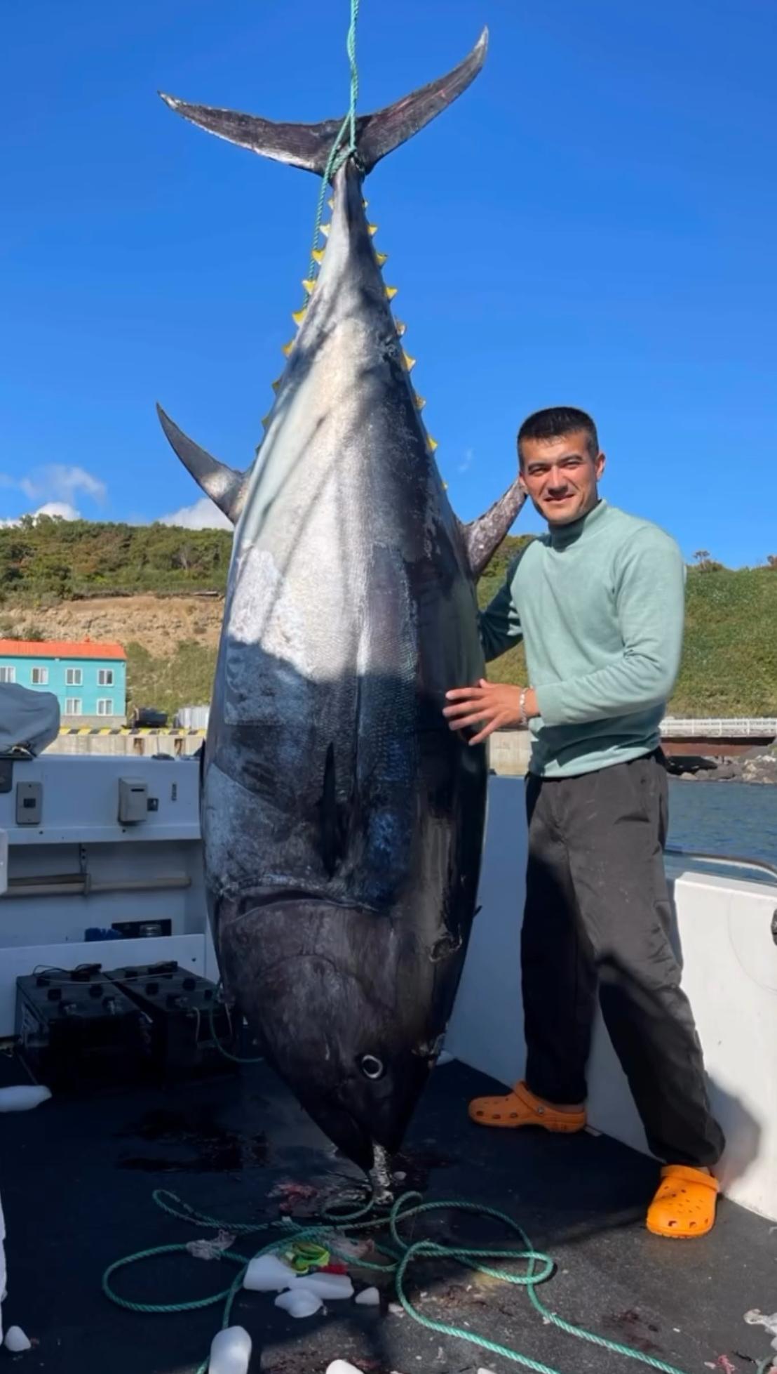 Тунца-гиганта выловили у берегов Итурупа. По первоначальной оценке, вес трофея превысил 284 кг.
