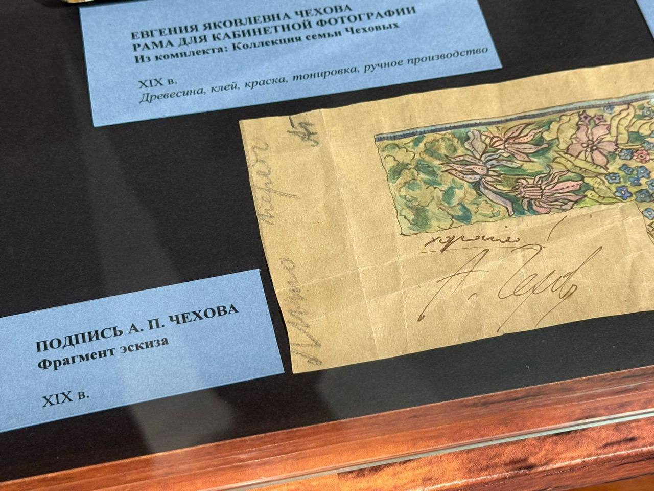 Десять зарисовок, принадлежащих брату писателя, Николаю Чехову, увеличили в масштабе и черной краской нанесли на стену. Росписью занималась семья островных художников Константин Колупаев и Екатерина Флоринская. Это - часть экспозиции, в которой отразили жизнь Антона Чехова через судьбы четырех его братьев. Представили свыше 100 предметов. Это личные письма, публикации в журналах, фотографии. Особое место заняла подлинная подпись Чехова. Ее оригинальность подтвердила почерковедческая экспертиза. Раритет показывают посетителям нечасто - бумага выцветает на свету. Некоторые экспонаты одолжили в фонде Таганрогского государственного литературного и историко-архитектурного музея-заповедника. Их представили в виде копий.