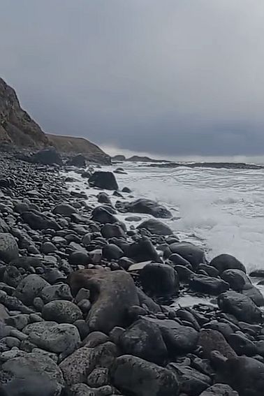 Версия того, как всё могло произойти, изложена в телеграмм-канале «Красный маяк». Вероятно, на прибрежном участке, по которому двигался внедорожник, образовалась промоина. А накатившая мощная волна накрыла машину и отбросила её на скалу, потом автомобиль оттащило обратно.