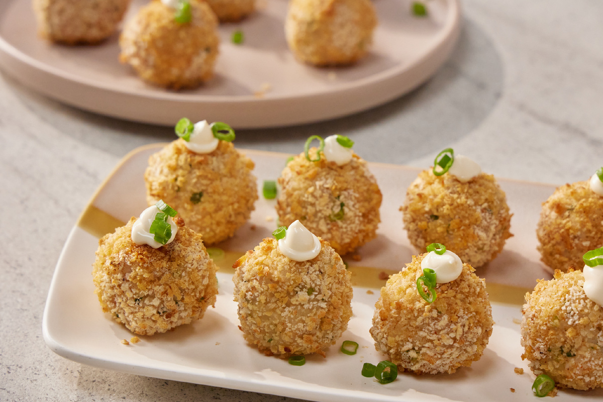 Для начала рис следует отварить, используя метод без слива. В соотношении 1:1 добавить 100 мл воды, добавить немного соли и готовить на медленном огне. После закипания прикрыть крышкой и варить, пока не испарится вся вода (примерно 15 минут). В конце выключить огонь и оставить на 10 минут.Тем временем зелёный лук нужно нарезать: белую часть мельче, а зелёную -- чуть крупнее.Добавить нарезанный лук в рис, влить соус терияки, поперчить и хорошо перемешать.Затем вставьте кусочки тунца с соком в рис и аккуратно соедините все ингредиенты.Вмешайте в массу творожный сыр до получения однородной консистенции.Смочите руки водой и сформируйте шарики среднего размера.Смешайте панировочные сухари Панко с копчёной паприкой и обваляйте каждый шарик в этой смеси.На противень выложите панированные шарики, добавив по полчайной ложки подсолнечного масла на каждый шарик. Выпекайте в разогретой до 200-210°C духовке в течение 10 минут.За несколько минут до готовности мелко нарежьте оставшийся зелёный лук.Когда шарики будут готовы, сервируйте их на большой тарелке, добавив сверху немного майонеза и украсив нарезанным зелёным луком.Приятного аппетита!