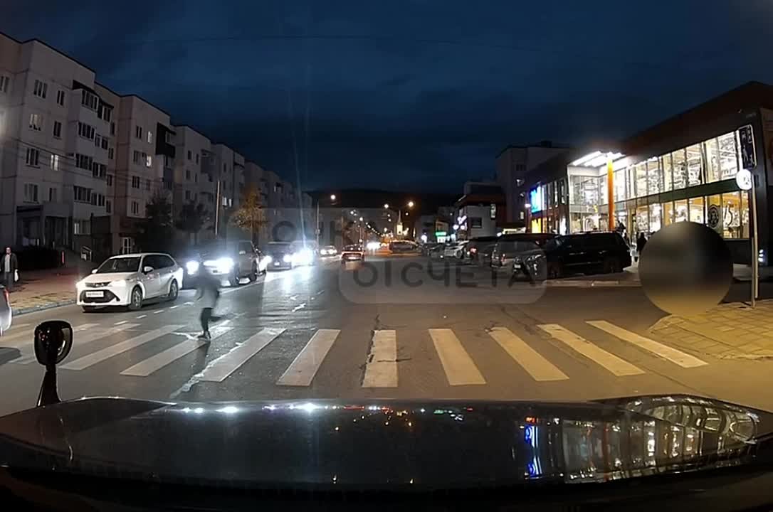 Ребёнок едва не попал под колёса авто в Южно-Сахалинске. Мальчик резко выбежал в сторону пешеходного перехода из-за припаркованных машин.