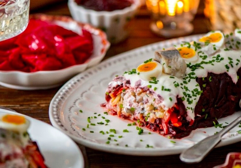 - Финский рулет из сельди и свеклы — оригинальное блюдо, обладающее насыщенным вкусом и ярким внешним видом. Слои сельди и свеклы, пропитанные уксусной заправкой, придают уникальный оттенок обычному салату.