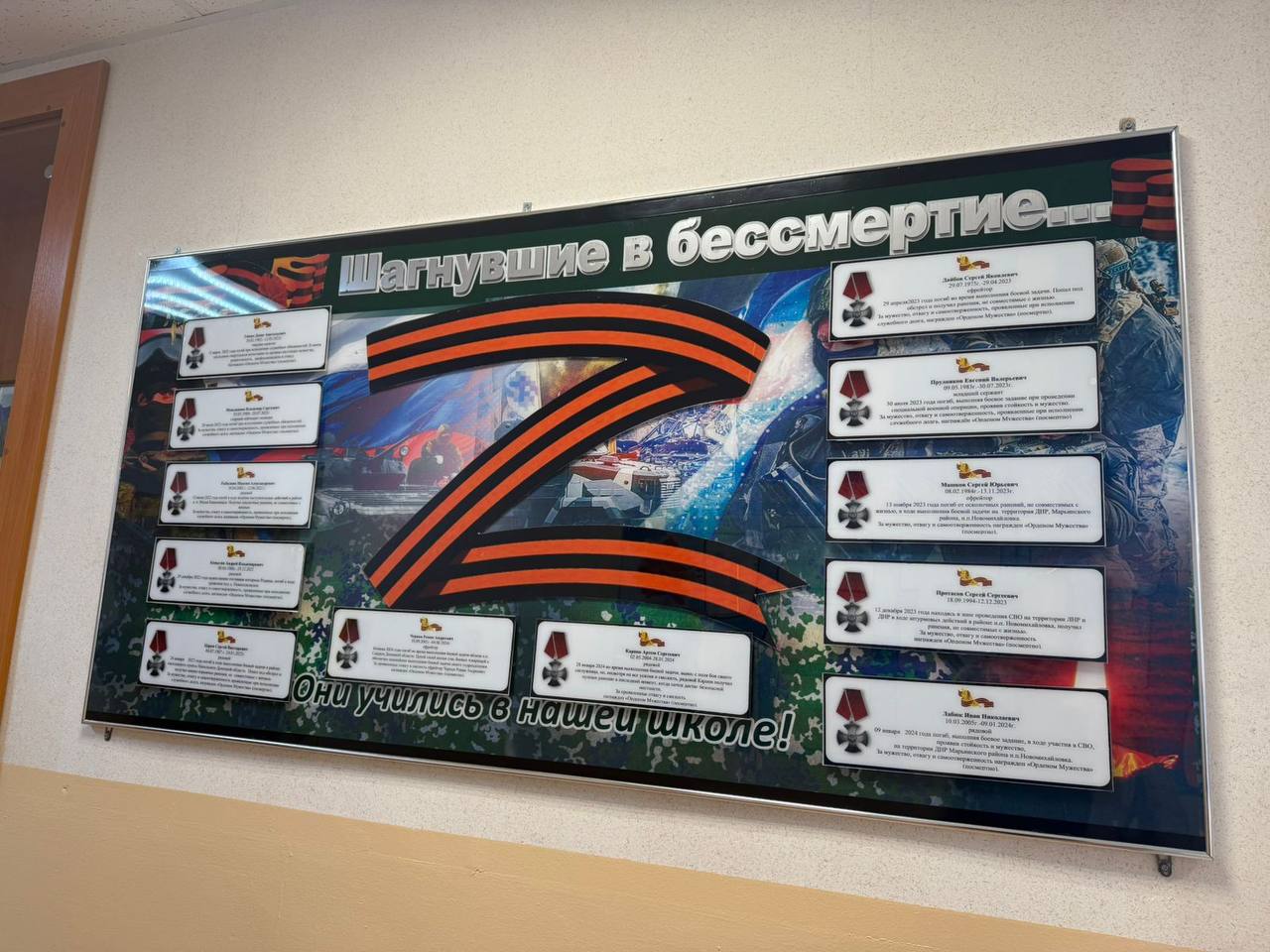 Ребята из 10А класса решили увековечить память не только о бывших учениках школы, павших в боях, но и обо всех погибших героях. Подготовили проект сквера, центром которого стала стела из черного гранита с объемной буквой Z. Инициативу поддержало руководство школы. Финансирование удалось получить благодаря проекту «Молодежный бюджет», а выбрать место для сквера помогла администрация села.